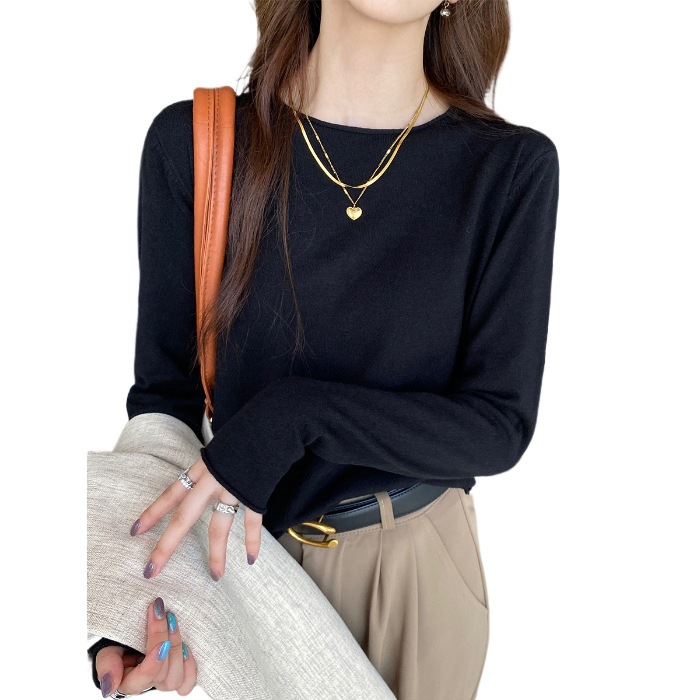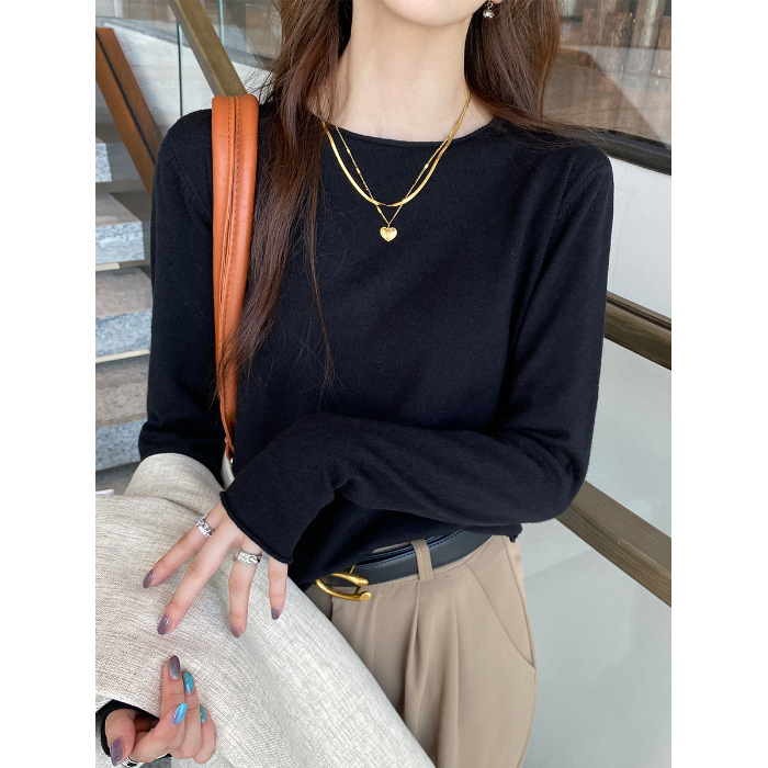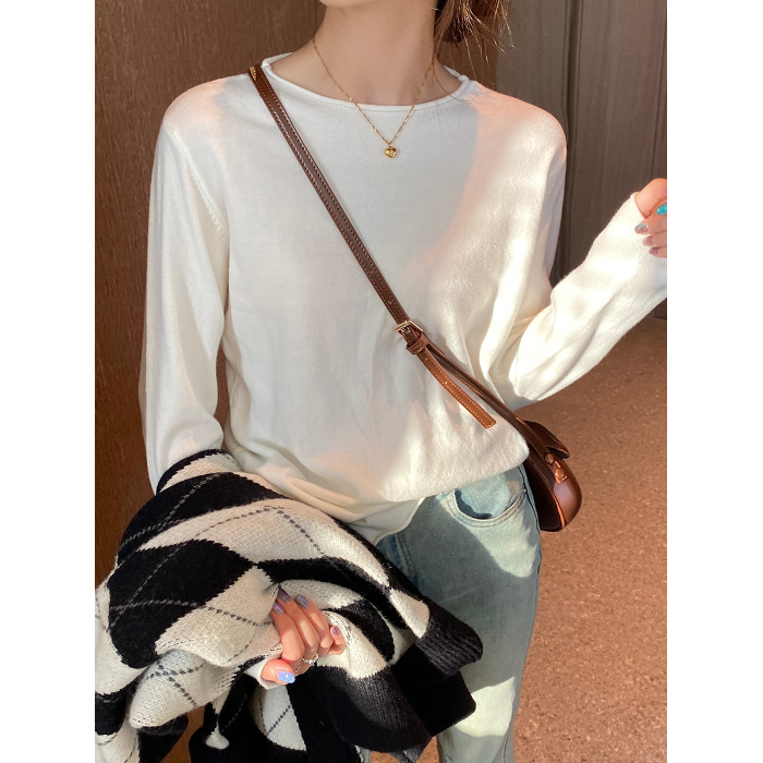 Главная страница > Вязаный свитер женский внутри высокого уровня чувство нижней рубашки 2025 весна и осень новый топ с длинными рукавами свободный круглый вырез ранняя осень свитер
