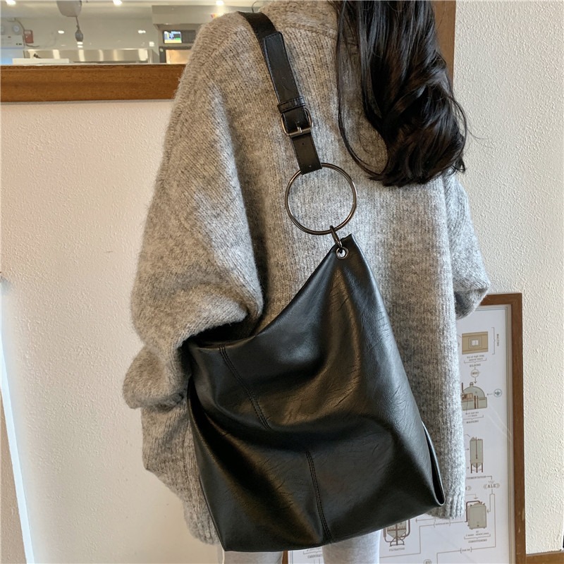 Осенне-зимняя новая большая сумка в корейском стиле для интернет-знаменитостей на одно плечо, женская большая вместительная сумка через плечо из мягкой кожи, модная простая большая сумка