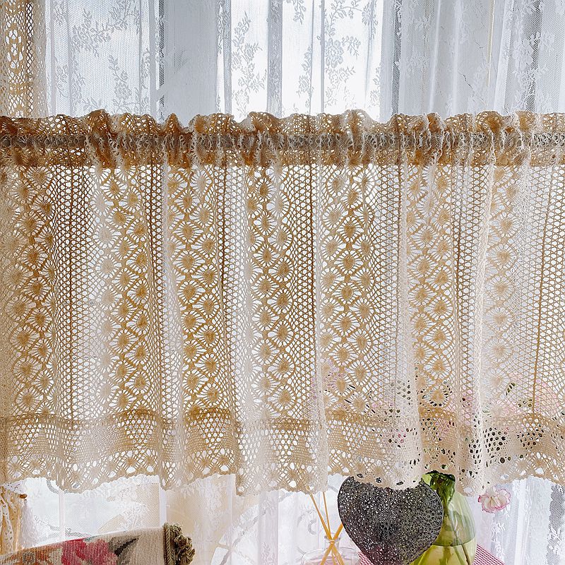 Главная страница > Американский ретро-шторный занавес в стиле кантри с кружевом и узором в виде крючков, без сверления, для дверей, шкафов и небольших окон.