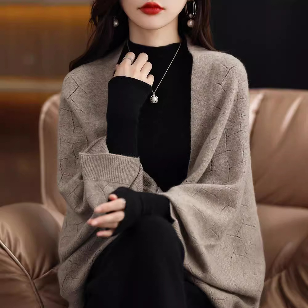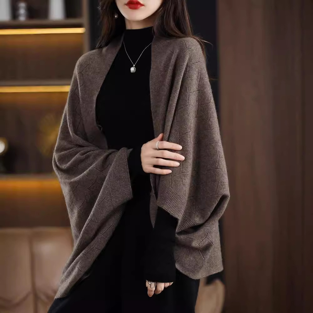 Главная страница > Однотонный кашемировый вязаный шарф-накидка двойного назначения, весна-осень 2025, новая свободная универсальная верхняя одежда, кардиган-накидка для женщин