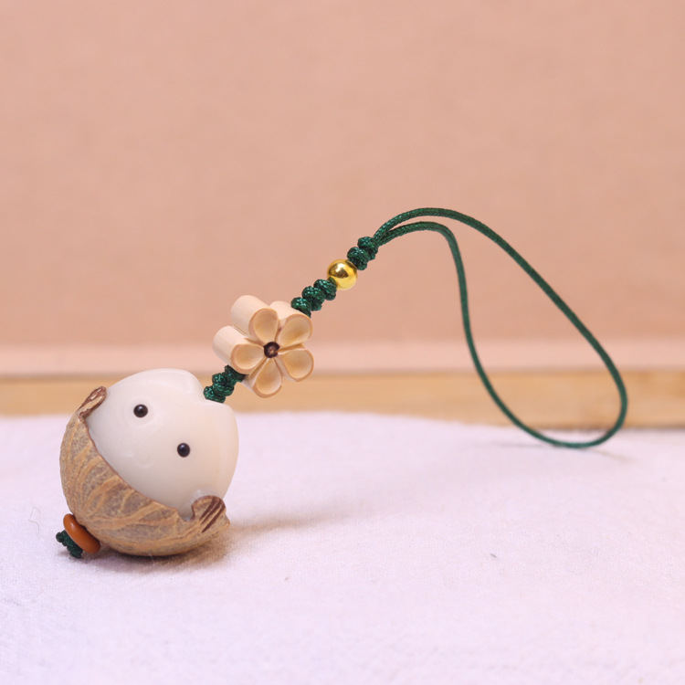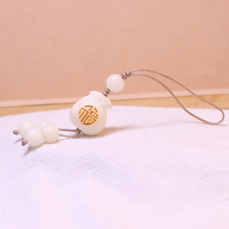 Главная страница > Белая Бодхи резьба с кожаной кошкой брелок
