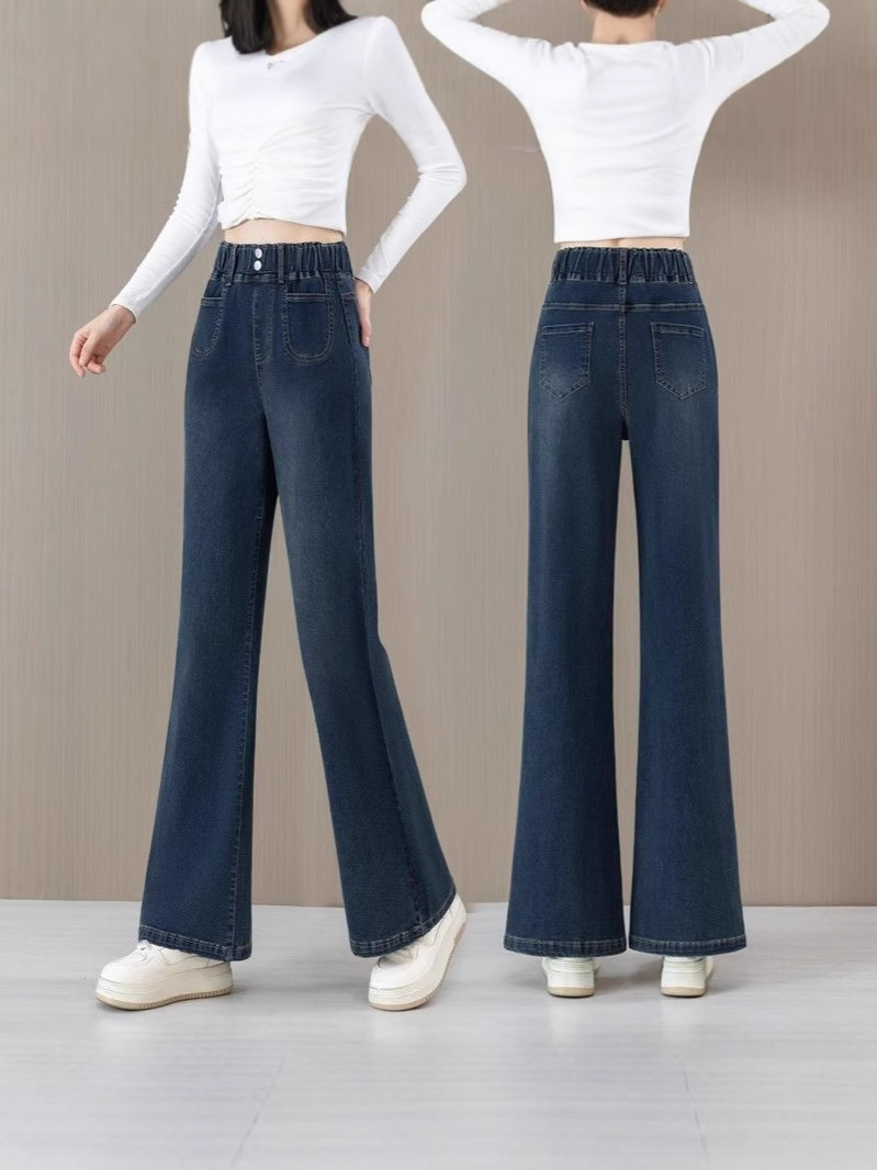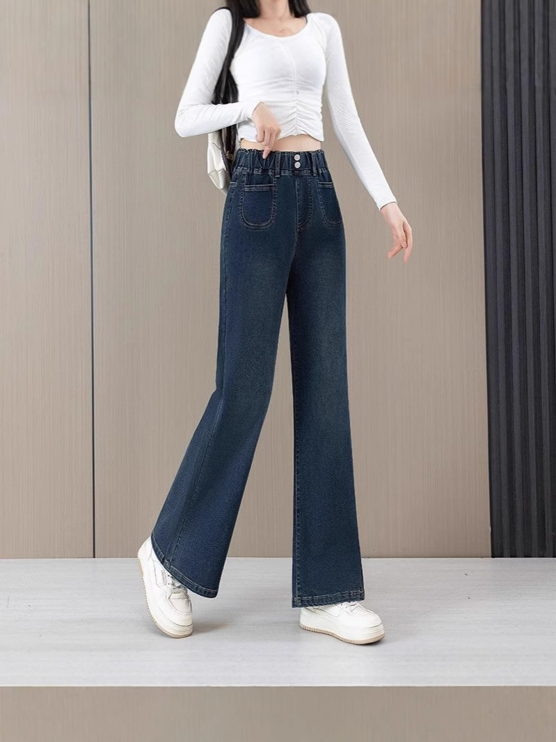 Главная страница > Эластичные джинсовые брюки эластичные брюки коровы осень-зима 2025 новая высокая талия свободные расклешенные брюки