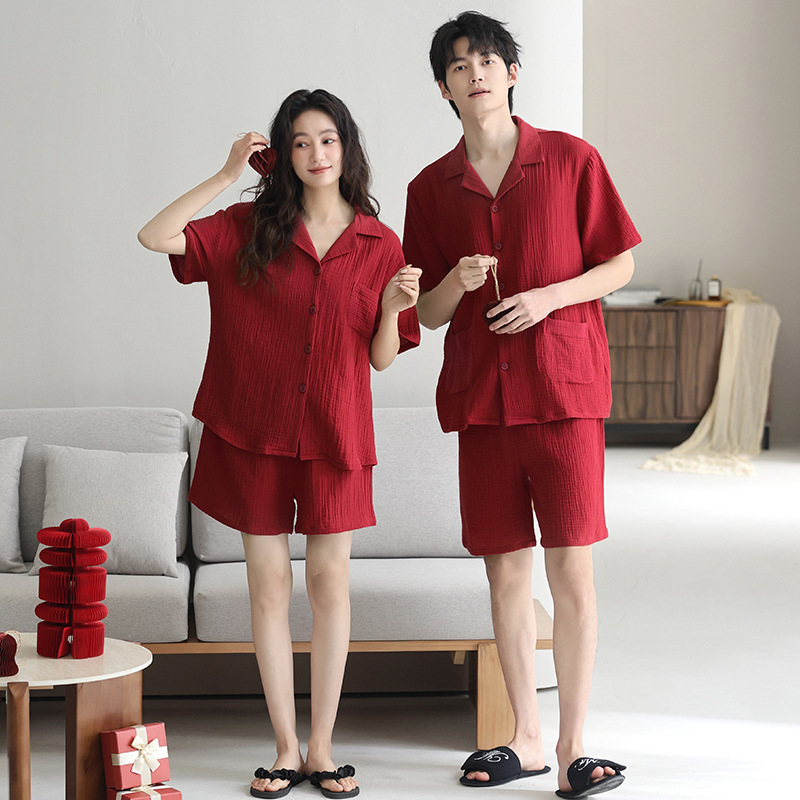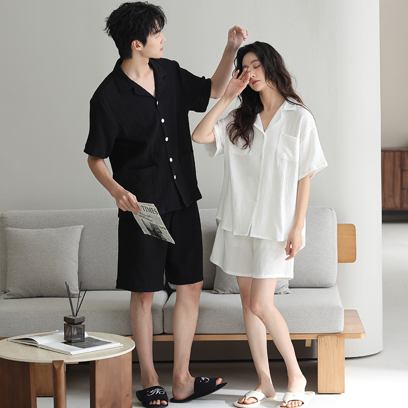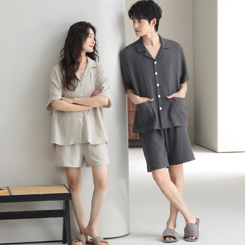 Главная страница > Летняя детская хлопчатобумажная пара пижамы женские простые шорты с короткими рукавами повседневные кардиган хлопчатобумажная двухслойная пряжа мужская домашняя одежда