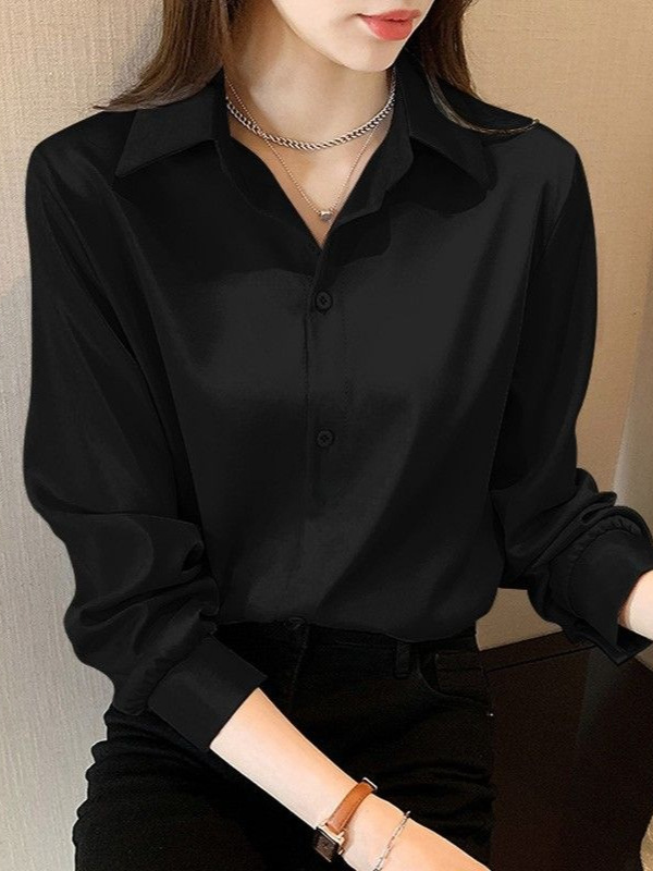 Главная страница > Черная рубашка с длинными рукавами, весенне-осенний новый дизайн, нишевый большой размер свободный топ, модная профессиональная рубашка