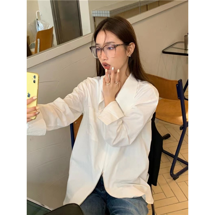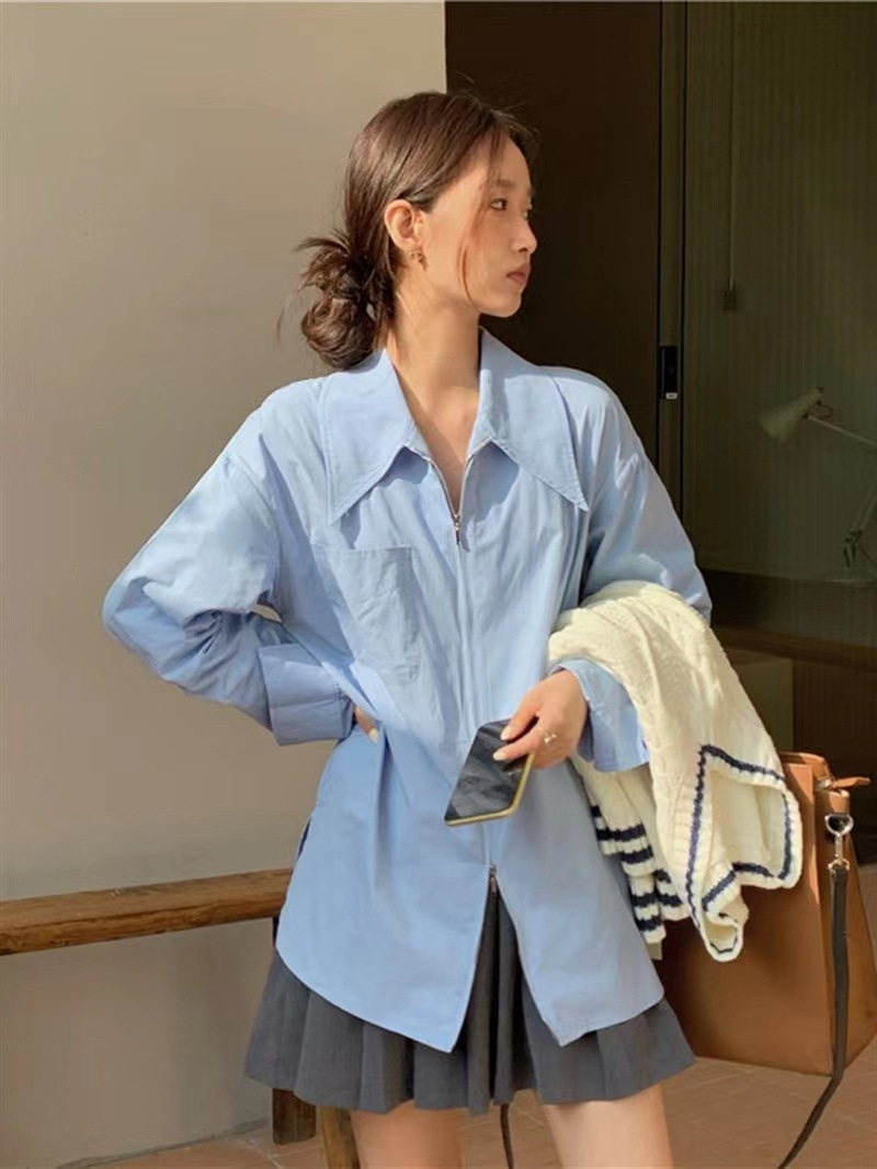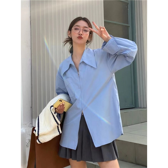 Главная страница > Белая рубашка во французском стиле с двойной молнией, Женская весенне-осенне-зимняя дизайнерская нишевая нижняя рубашка с шикарной рубашкой с длинными рукавами
