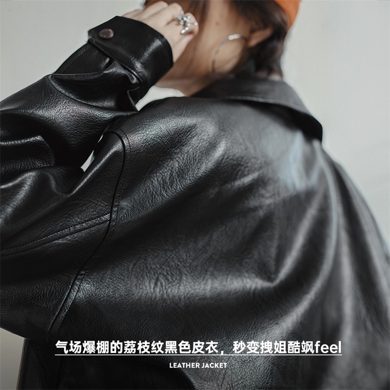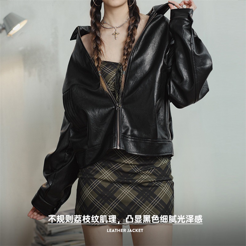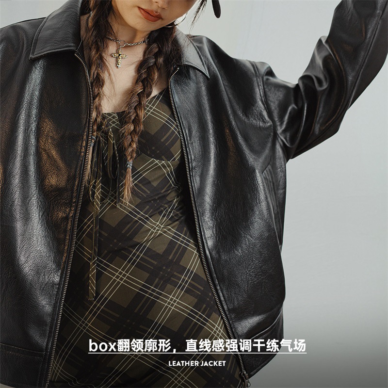Главная страница > Куртка из кожи цвета маден-беж в ретро-стиле, короткая куртка-косуха в гонконгском стиле, укороченный верхний пальтообразный жакет, осенняя женская одежда