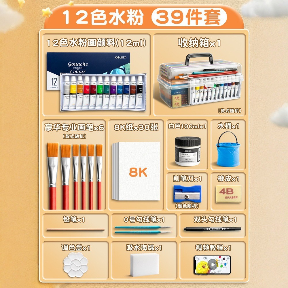 Главная страница > Набор акварельных гуашевых красок Deli, моющийся полный набор цветных инструментов для рисования, ручки, нетоксичные, только для студентов-художников