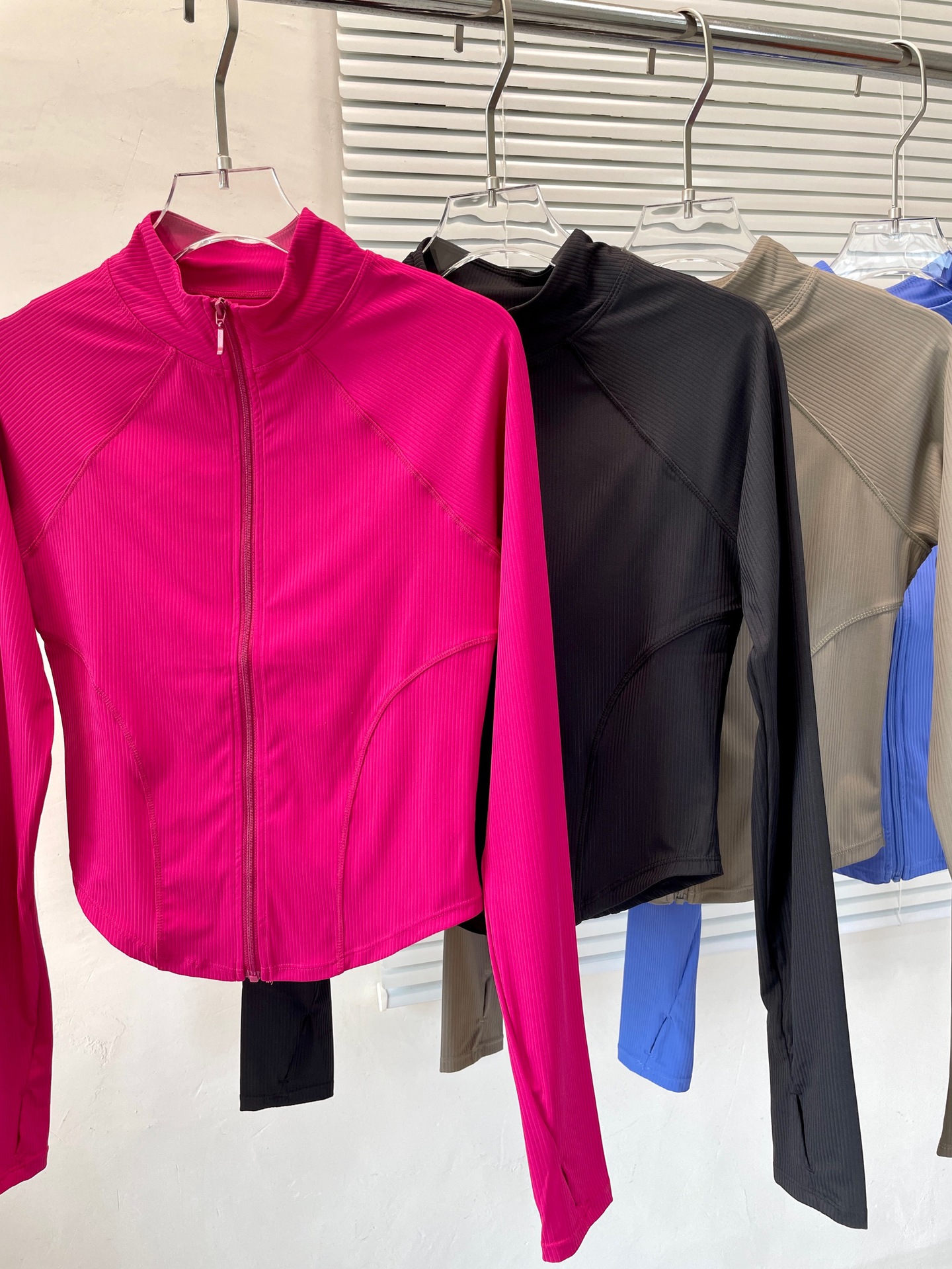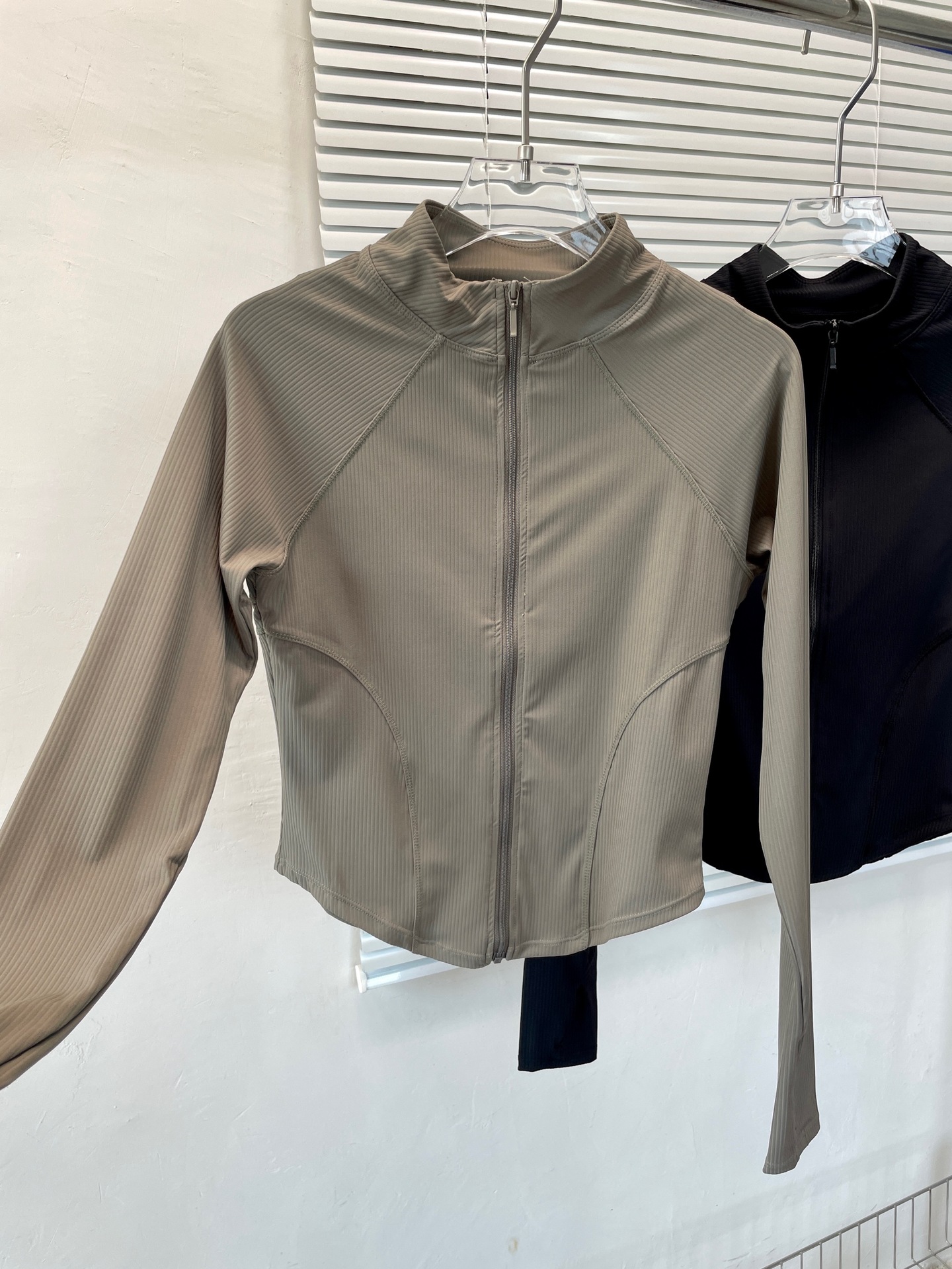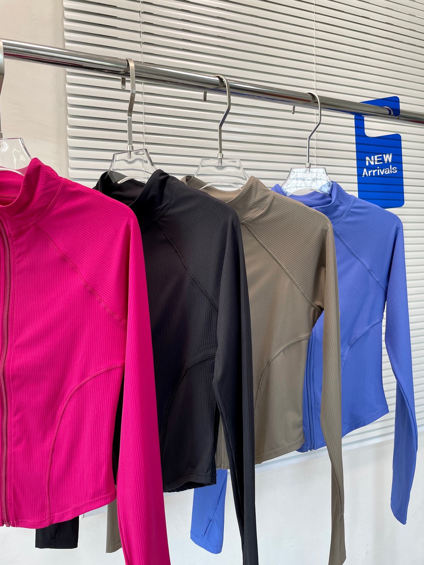 Главная страница > Спортивная куртка Lulu, Женская приталенная облегающая куртка для фитнеса, осенне-зимний ребристый костюм для йоги, эластичная куртка на молнии для бега
