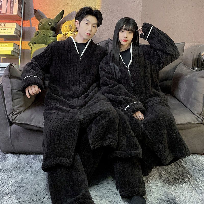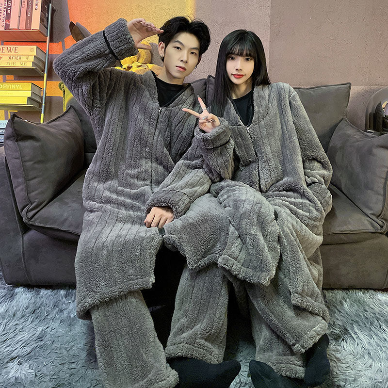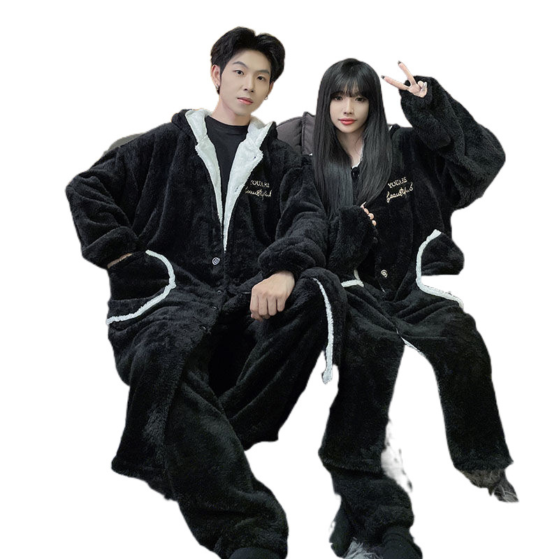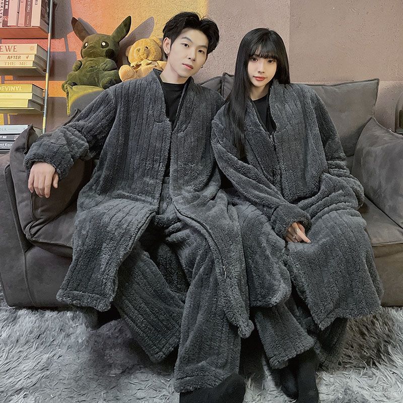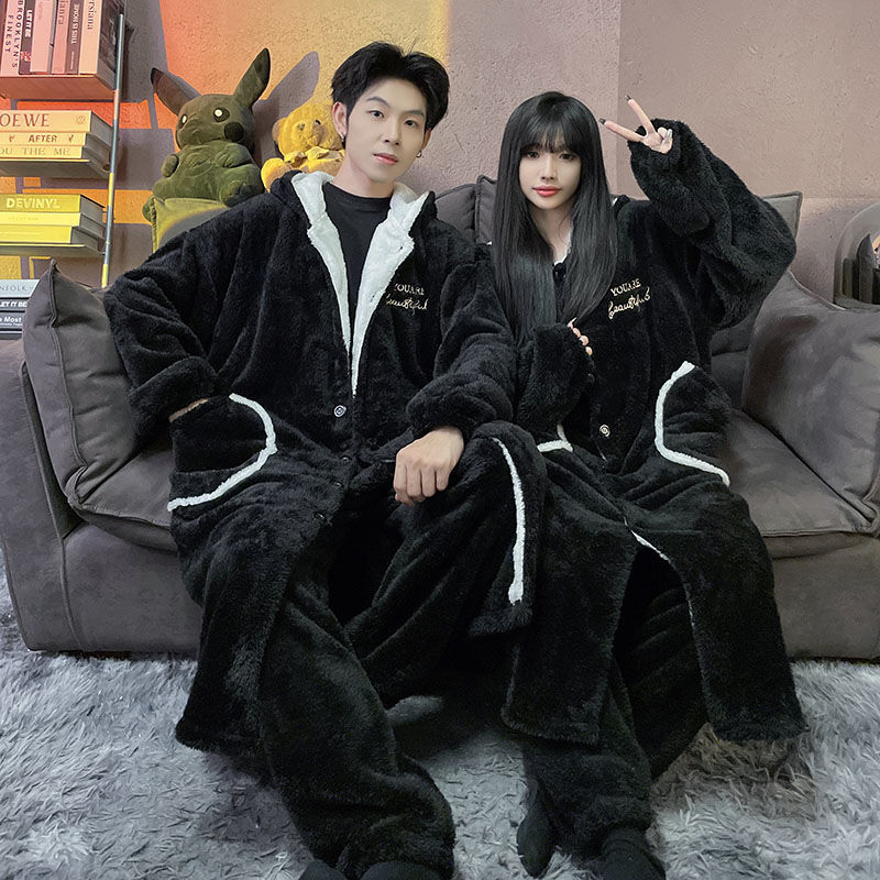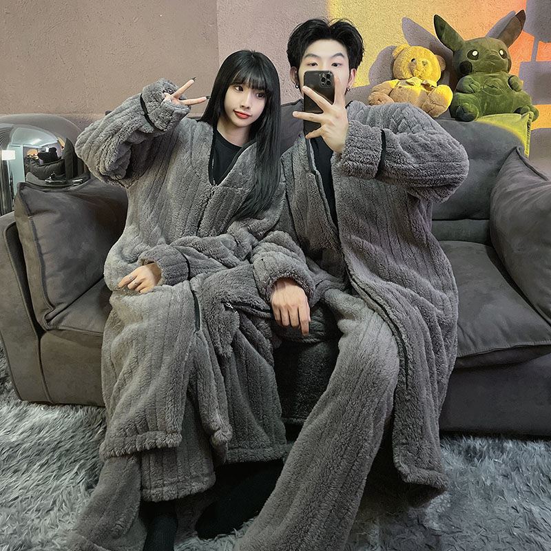 Главная страница > Зимние коралловые бархатные пары пижамы женские толстые мужские халаты свободный большой размер халат средний длинный набор домашней одежды
