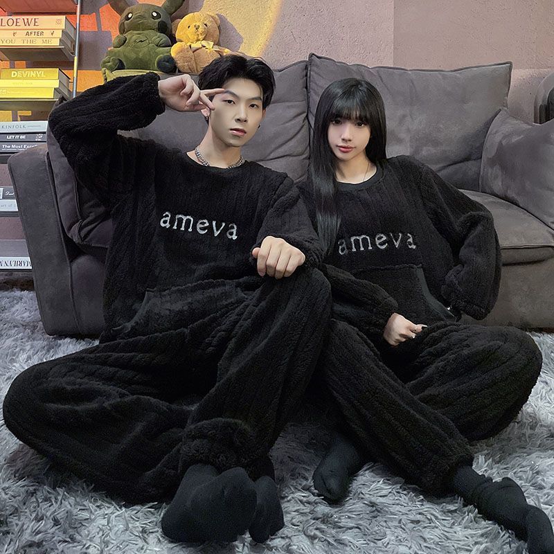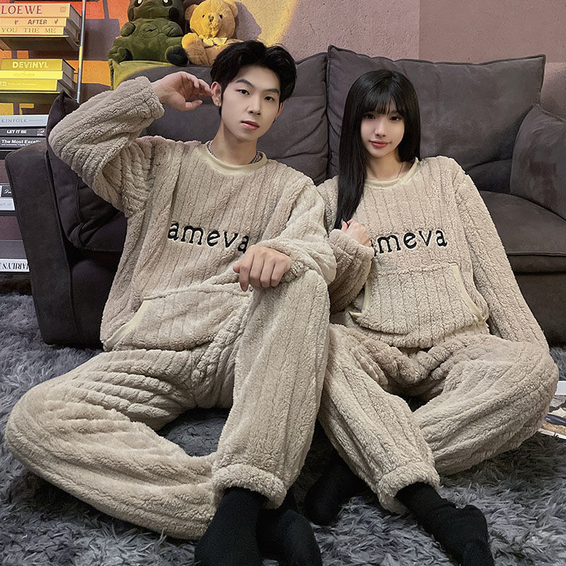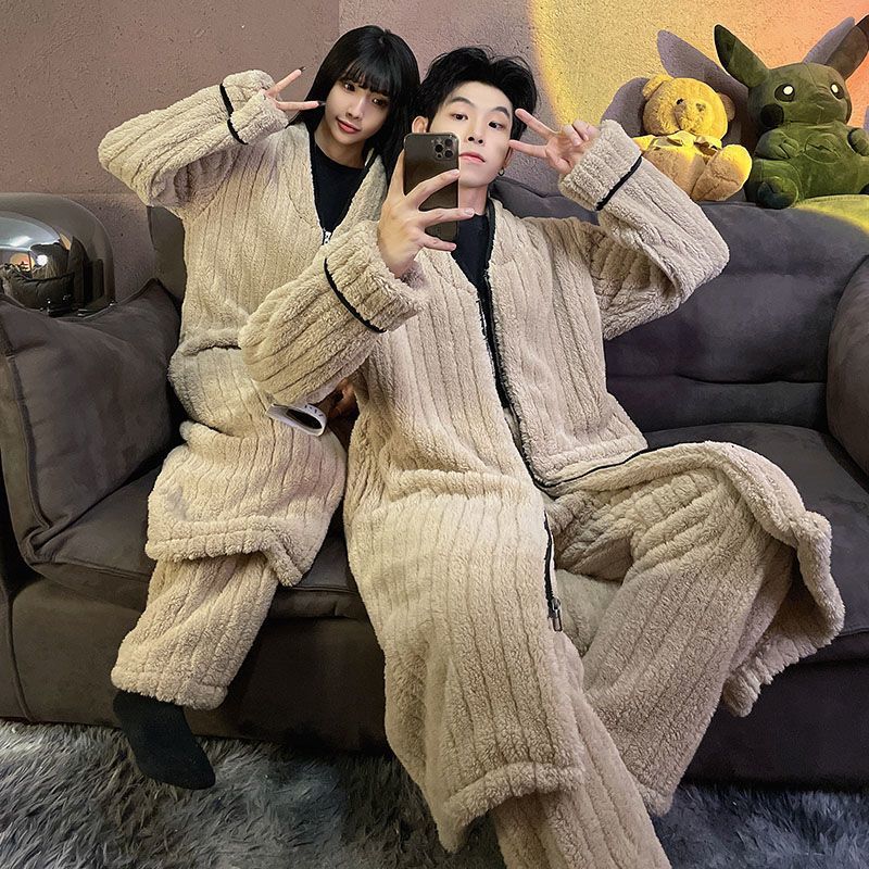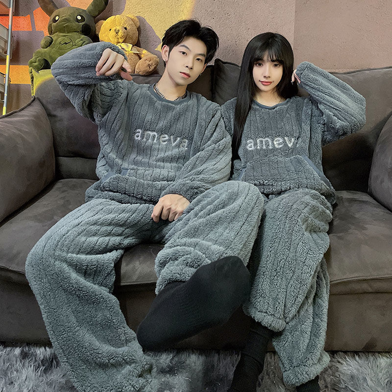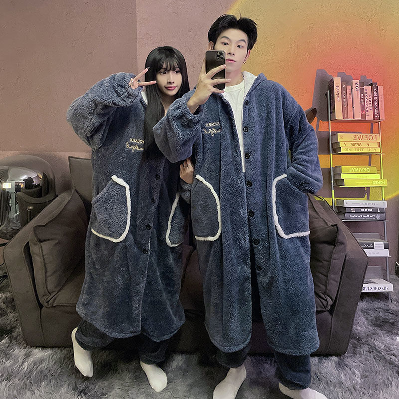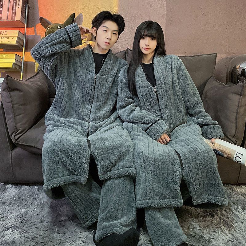 Главная страница > Зимние коралловые бархатные пары пижамы женские толстые мужские халаты свободный большой размер халат средний длинный набор домашней одежды