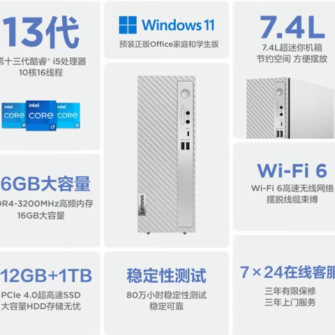Компьютер Tianyi 510S для офиса (14-го поколения i5-14400, 16 ГБ ОЗУ, 1 ТБ SSD, оригинальная Windows 11)