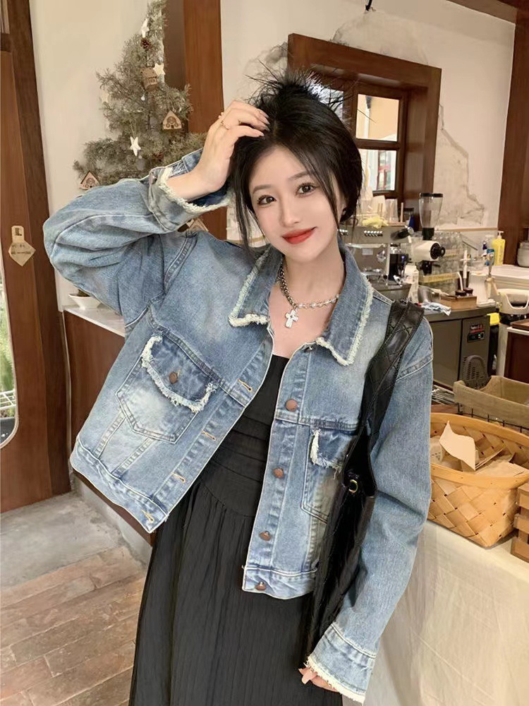 Главная страница > Маленький ароматный ветер кисточки джинсовая куртка маленькая девочка 2025 весна и осень новая модная свободная короткая куртка топ прилив