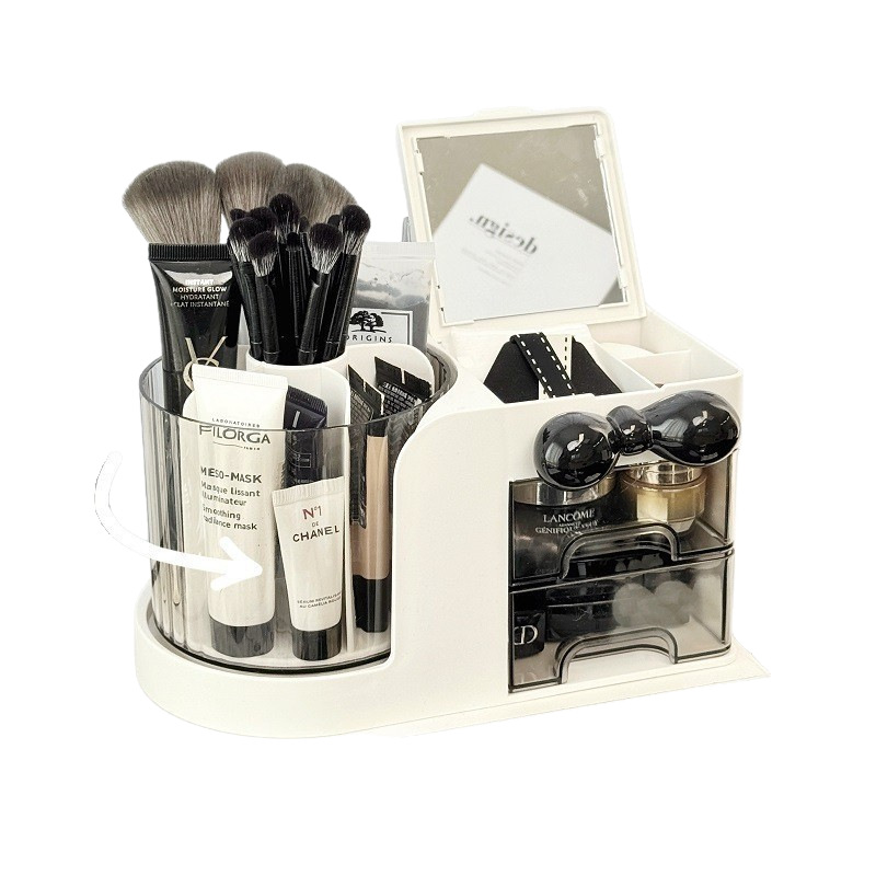 Белый настольный вращающийся ящик для хранения (с зеркалом для макияжа)