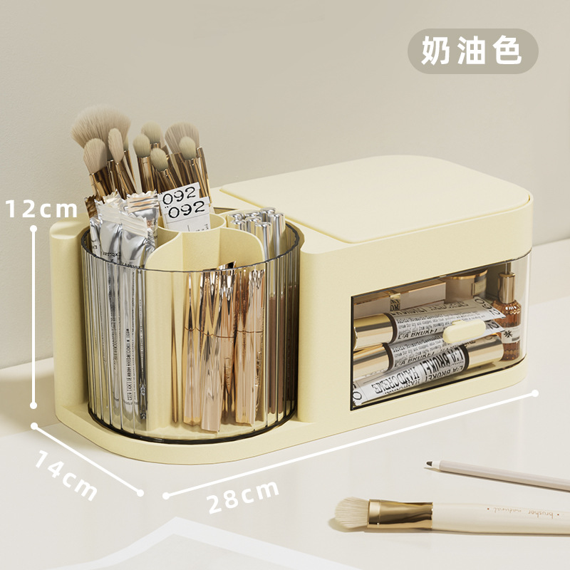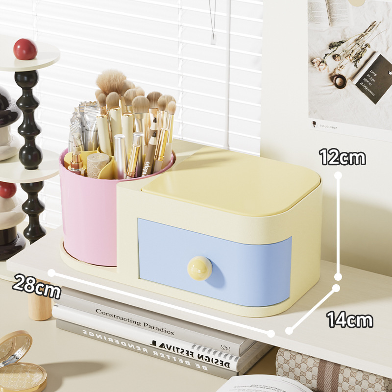 Настольный ящик для хранения, вращающаяся трубка для хранения кистей для макияжа, коробка для салфеток, столешница, туалетный столик, губная помада, тени для век, коробка для канцелярских принадлежностей, держатель для ручек