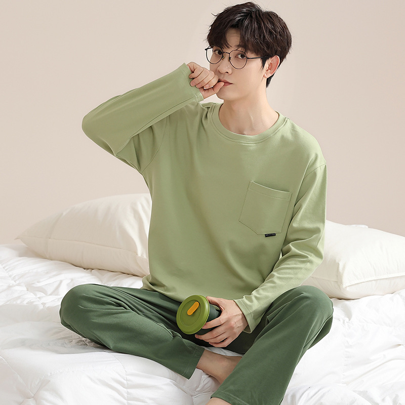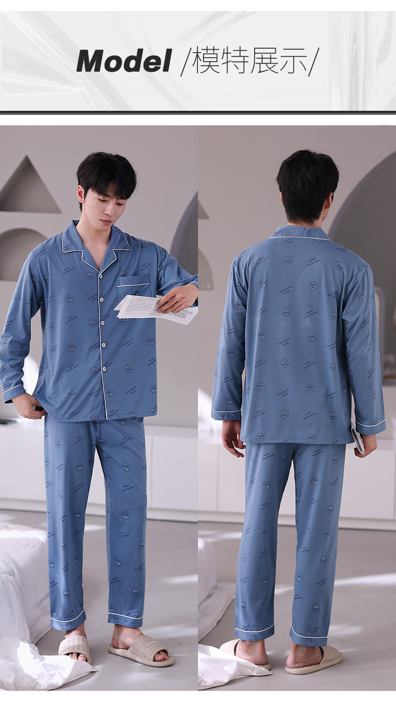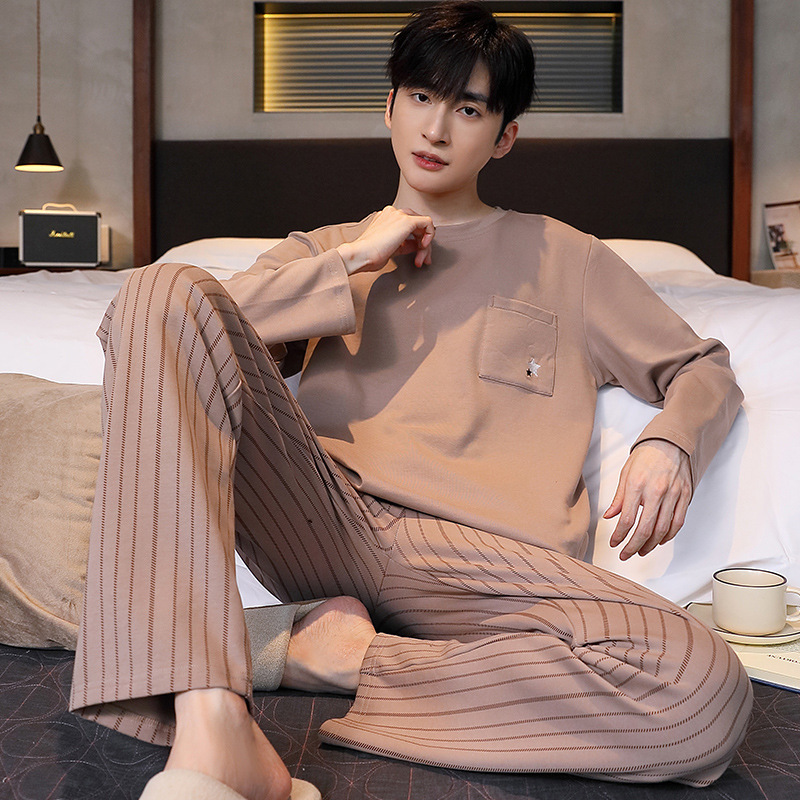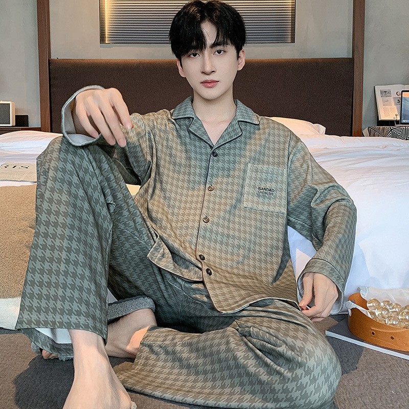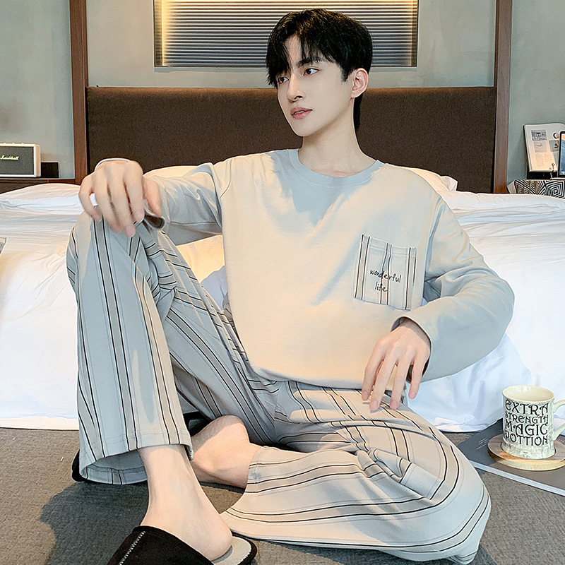 Главная страница > Новая мужская пижама весна и осень длинные рукава брюки простые повседневные кардиган домашняя одежда можно носить на улице осенний костюм