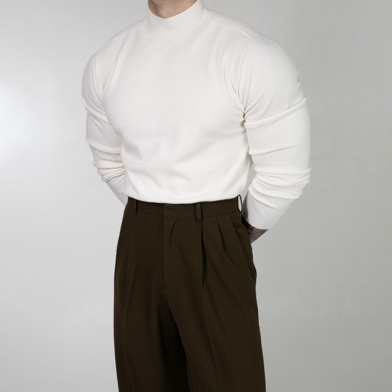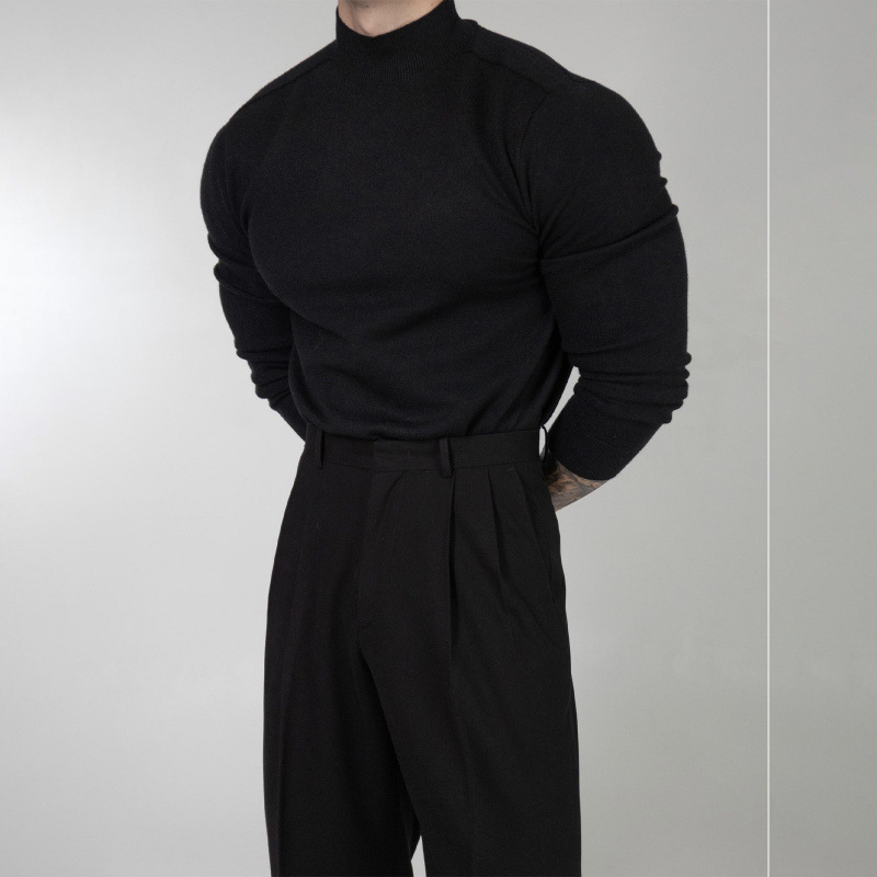Главная страница > Вязаный свитер с половиной воротником мужской весенний и осенний стиль гонконгский стиль ретро chic свитер повседневный пуловер свитер с длинными рукавами