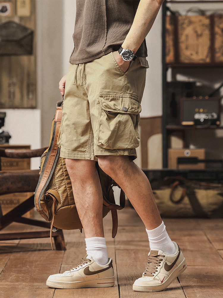 Мужские шорты-карго с несколькими карманами, летние свободные прямые повседневные модные модные шорты до колена в американском стиле ретро