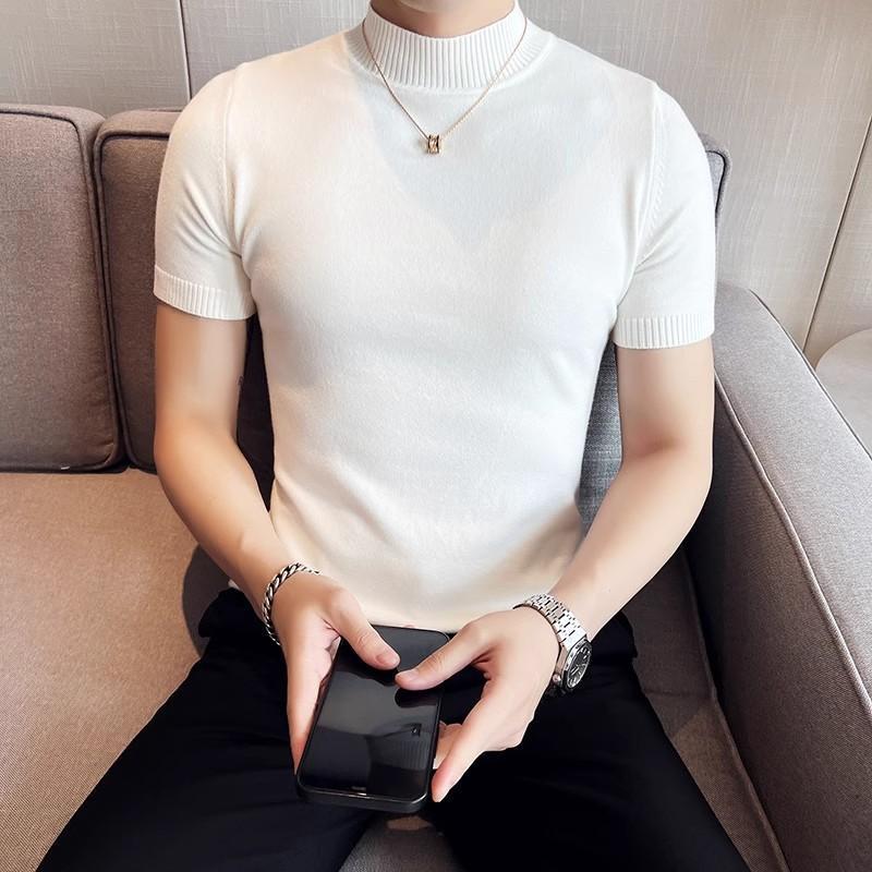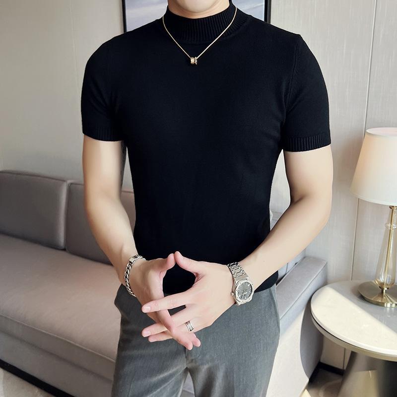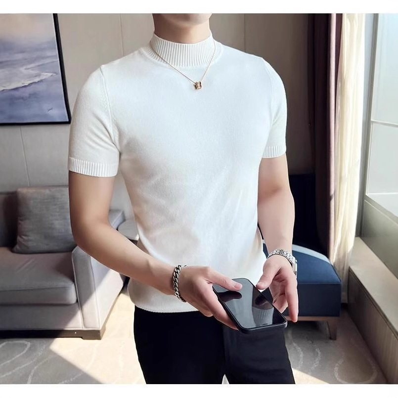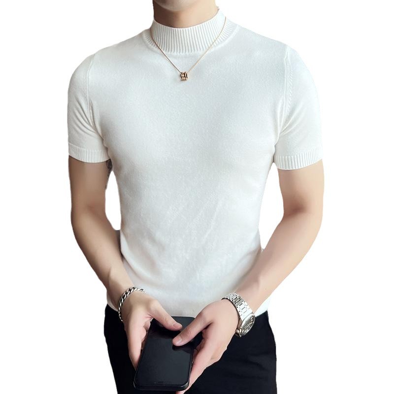 Осенний и зимний свитер с короткими рукавами мужской сплошной трикотаж