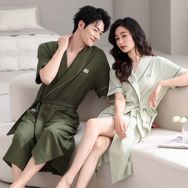 Главная страница > Парная ночная рубашка, пижамы, женские летние пижамы из чистого хлопка с короткими рукавами, новинка 2025 года, мужские летние кимоно, халат, домашняя одежда большого размера