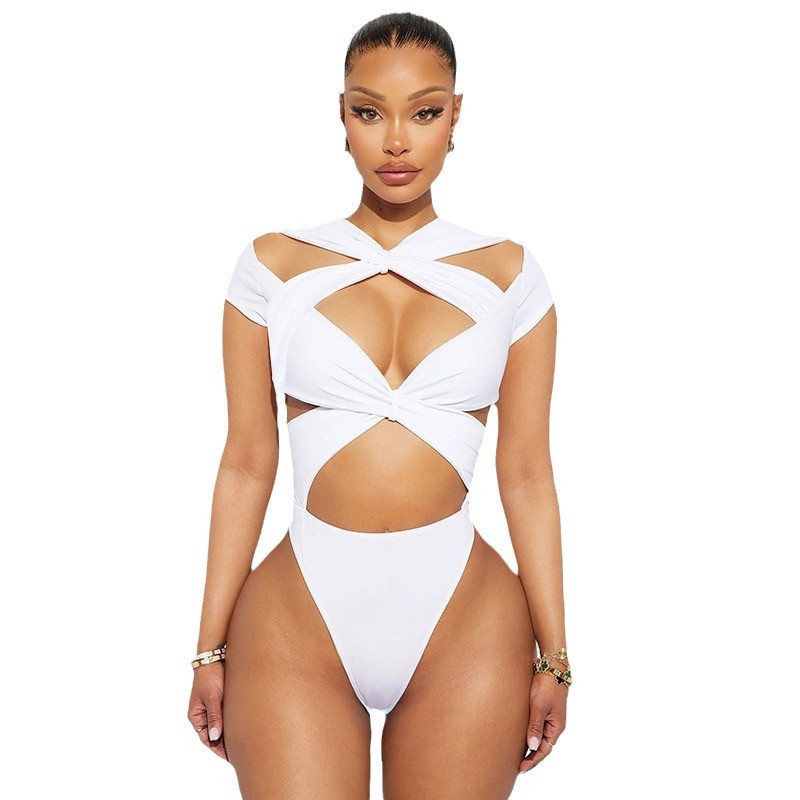 Европейский и американский трансграничный 2024 летний женский пупок сексуальный ремешок с короткими рукавами крест полые горячие девушки комбинезон для женщин оптом