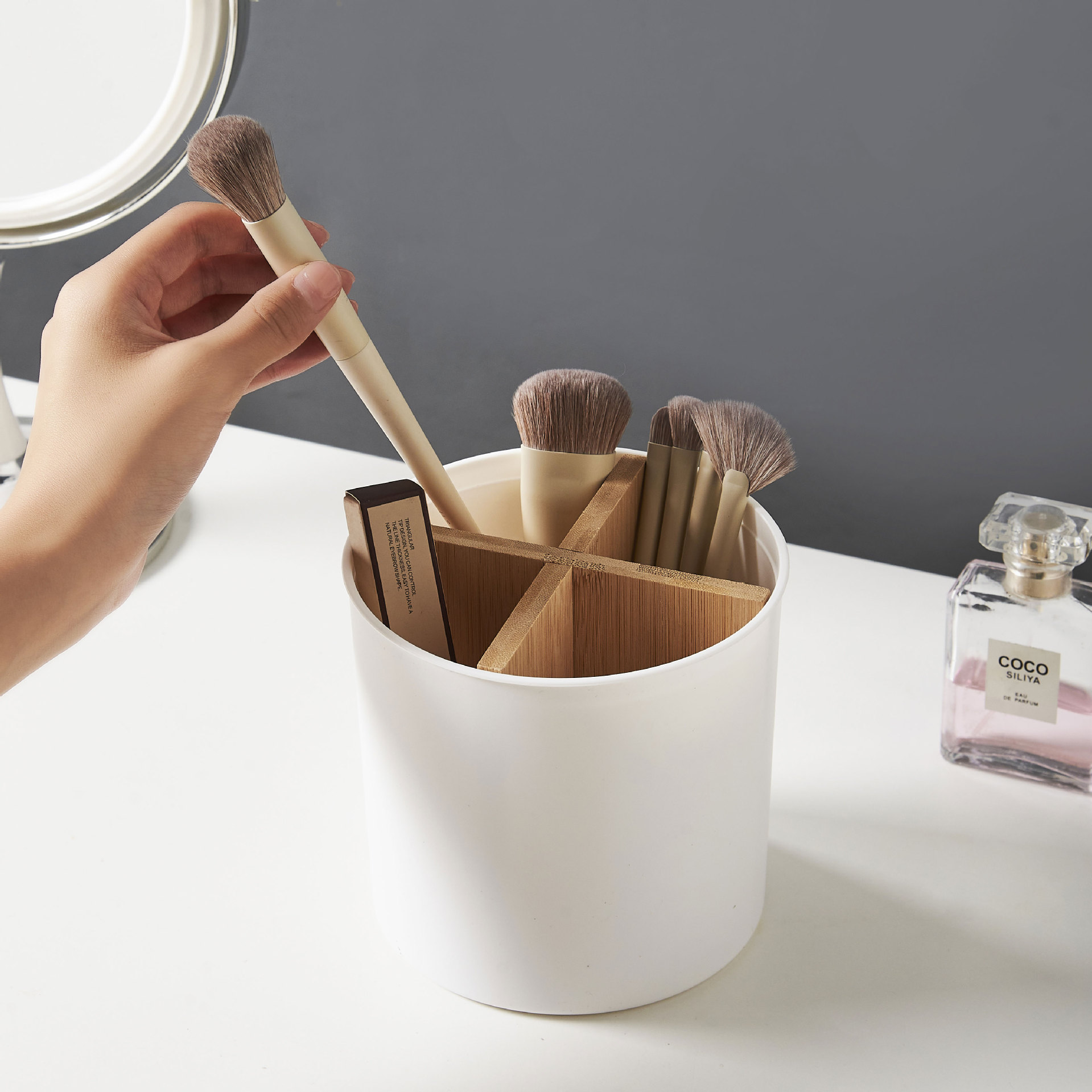 Главная страница > Контейнер для хранения кистей для макияжа, настольный органайзер для косметики и помады, четырехсекционный держатель для кистей для теней и карандашей для бровей, подставка для палочек для еды