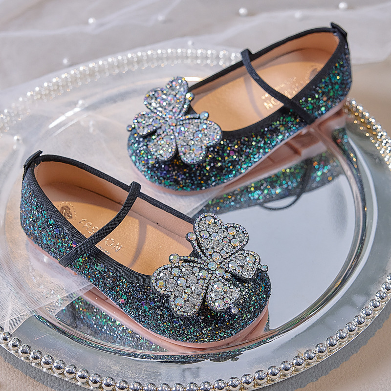 Главная страница > Маленькие кожаные туфли для девочек 2025 весна новые детские блестящие хрустальные туфли принцессы маленькая девочка бант плоская подошва одиночные туфли