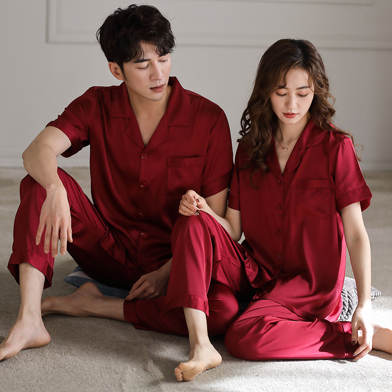 Главная страница > Свадебная Пижама для пары, женские шелковые брюки из ледяного шелка с короткими рукавами, праздничный свадебный большой красный весенне-осенний мужской костюм