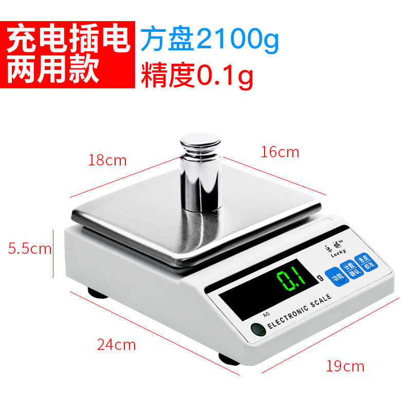 [Перезаряжаемая модель] Квадратная пластина 2100 г Точность 0,1 г