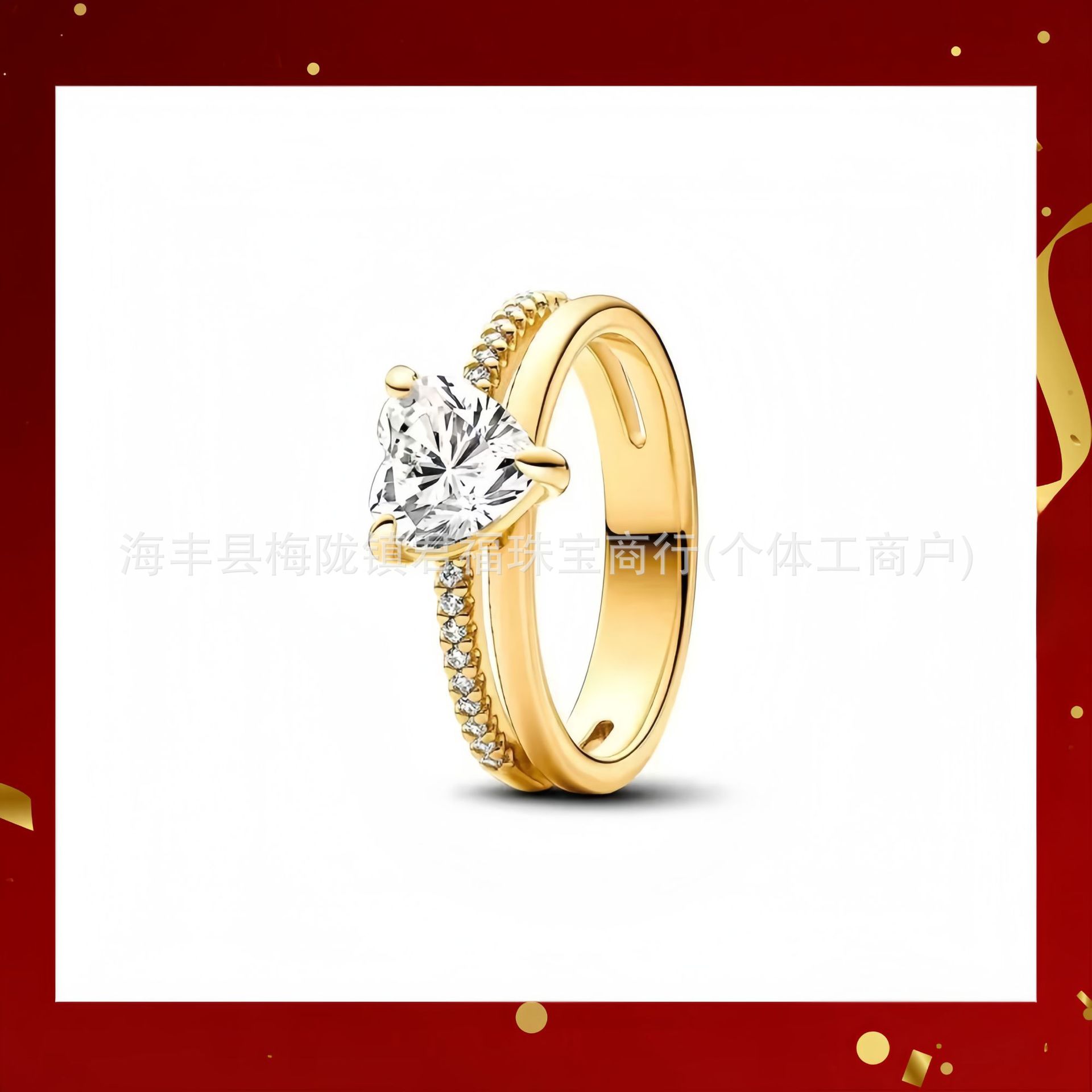 Главная страница > Новый продукт Panjia Dora White Медный Покрытие 925 Серебряное кольцо Золотое сияние Любви Алмазное кольцо Трансграничная мода