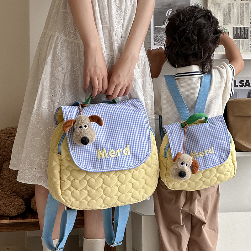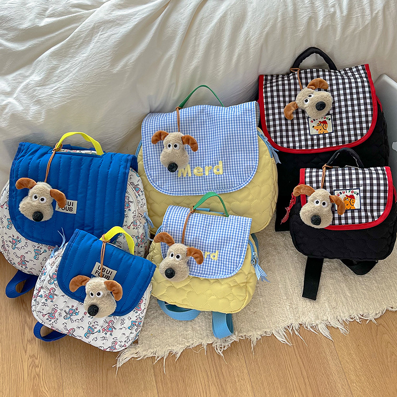 Корейская детская сумка ins новый мультяшный стеганый цвет двойной плечо летняя родительская прогулка свежий аксессуар рюкзак