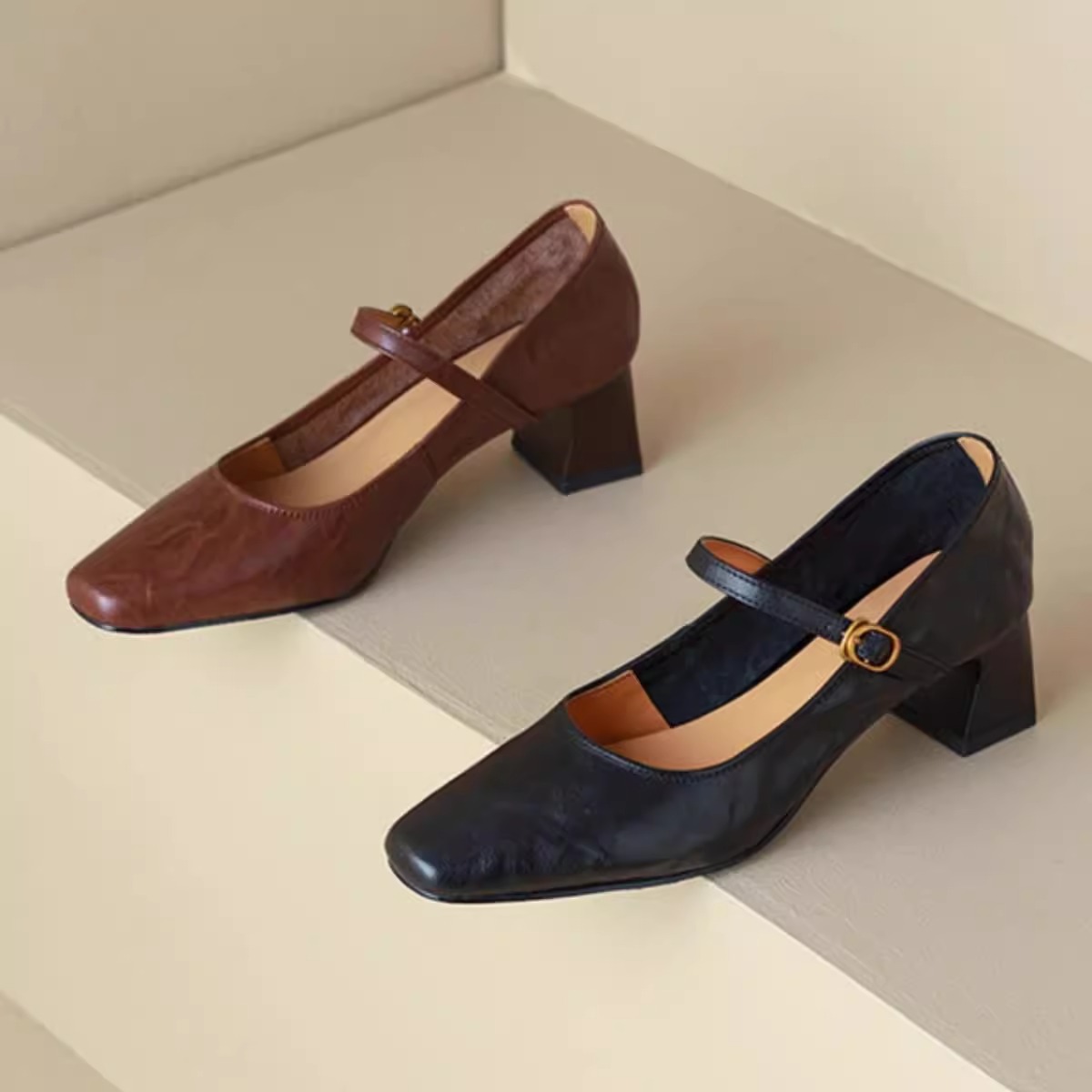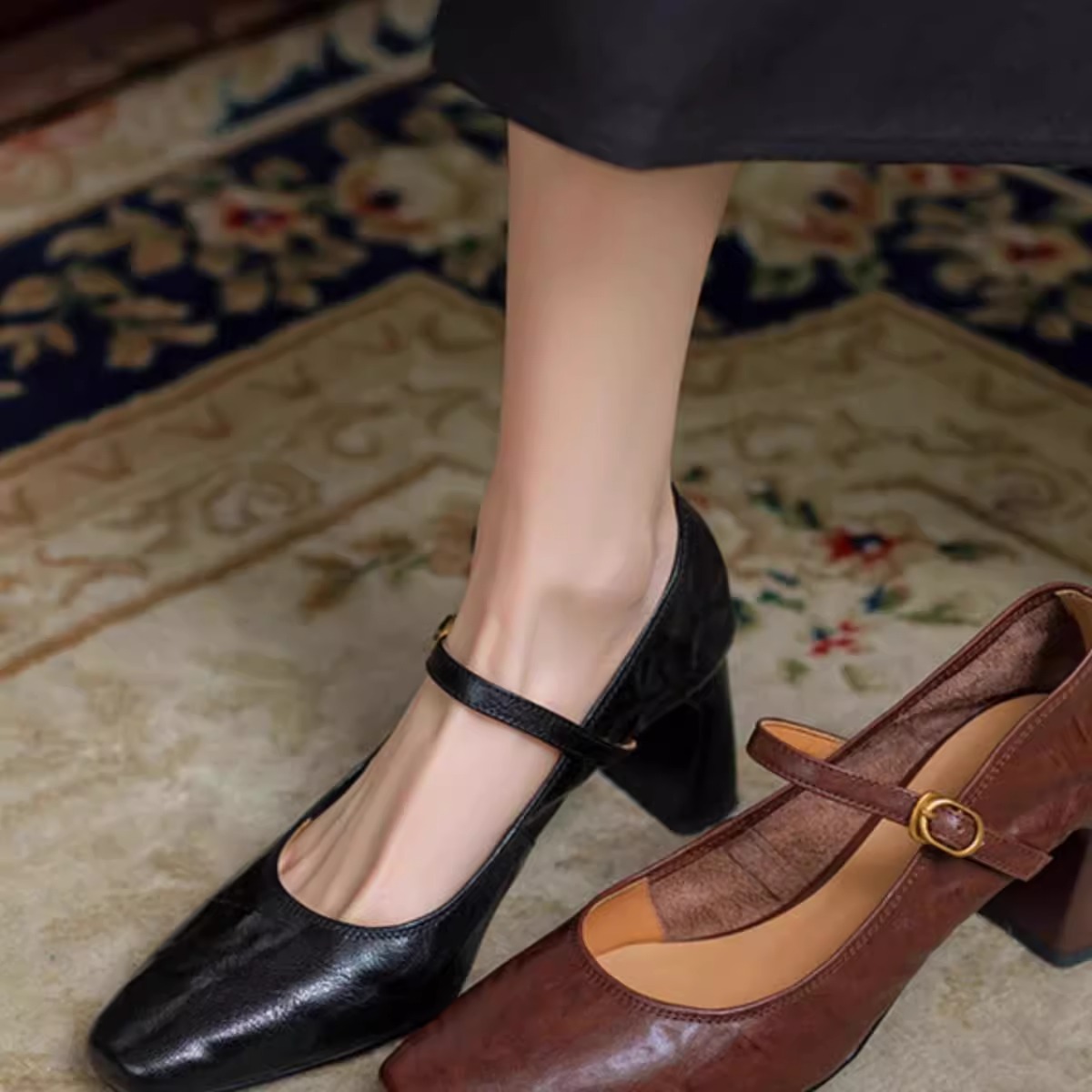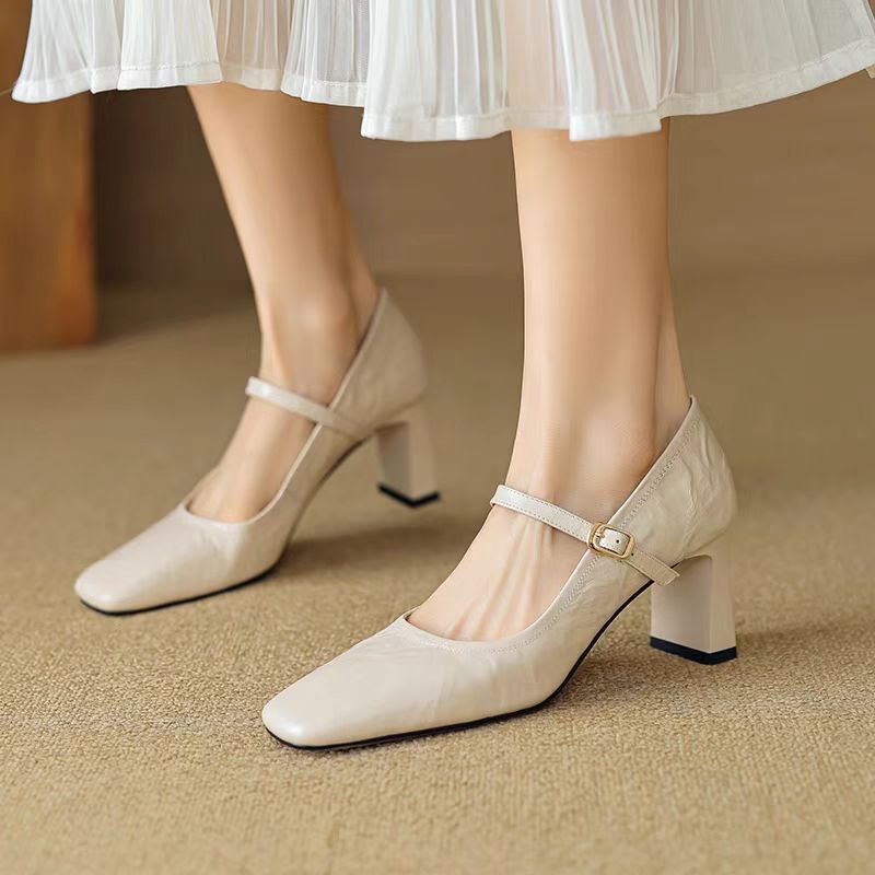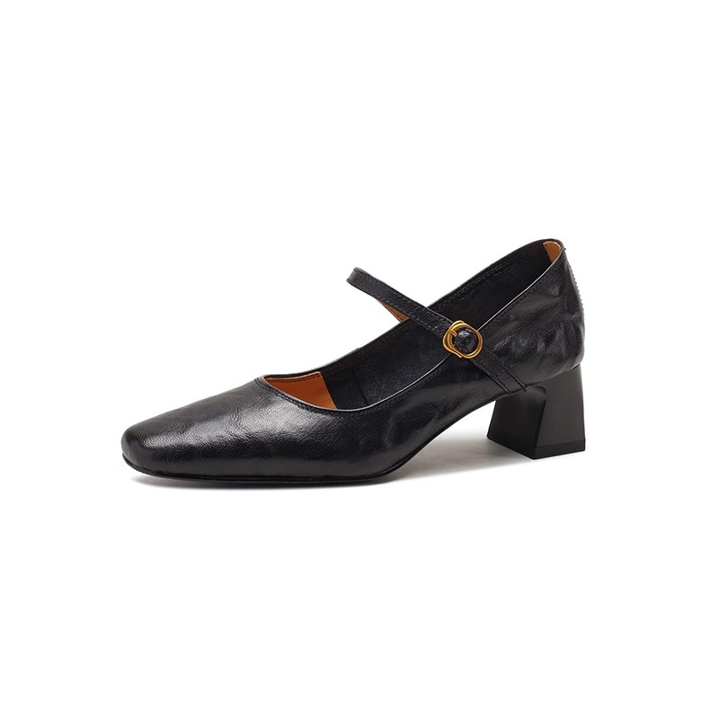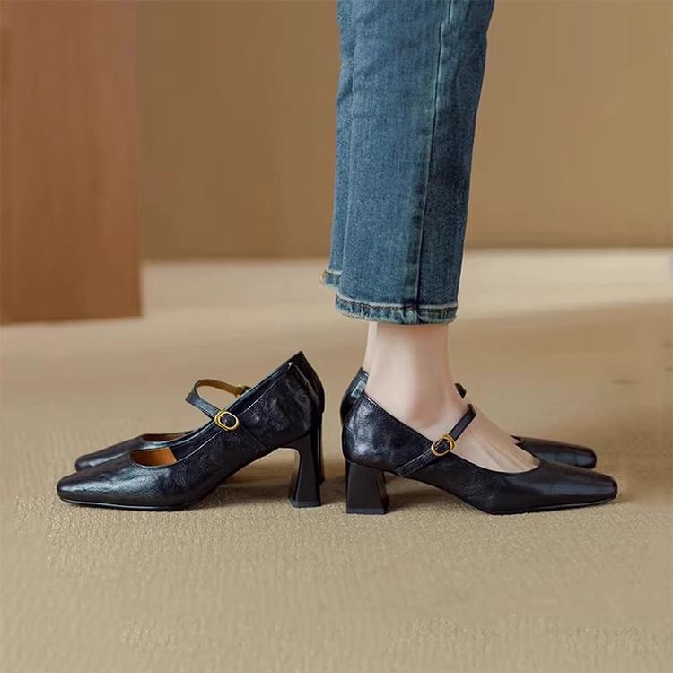 Главная страница > Супермягкие кожаные черные туфли на высоком каблуке, новая модель весна-осень 2025, французский ретро-стиль, массивный каблук, туфли Мэри Джейн для женщин