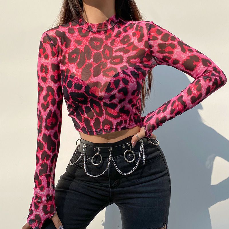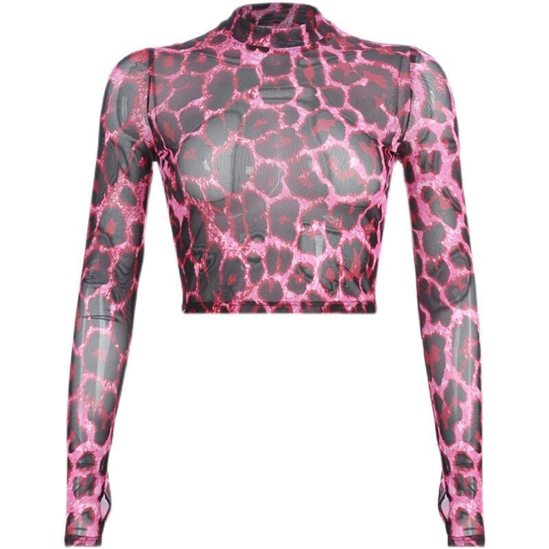 Главная страница > Короткий Топ для пупка, женская нижняя рубашка, женский сексуальный розовый плотный топ с леопардовым принтом, модная футболка с длинным рукавом, женская