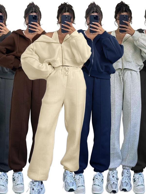 Главная страница > 211342 осенне-зимний новый европейский и американский однотонный кардиган с капюшоном, толстовка, женский комплект из двух предметов, модный повседневный комплект спортивных штанов