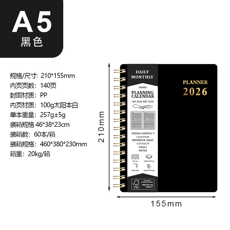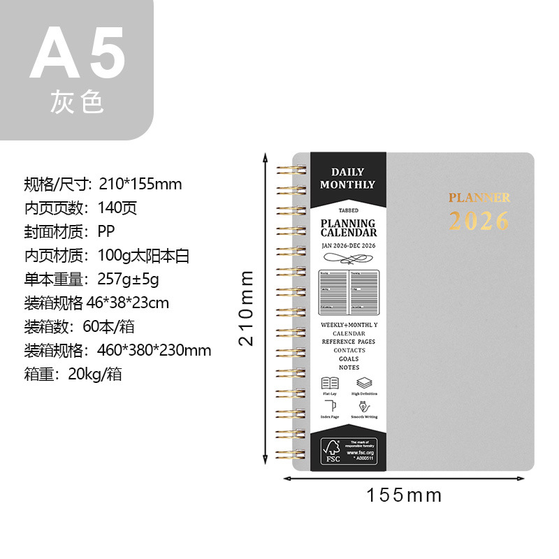 Главная страница > 2026 Планировщик кросс-граничный ежедневник PP календарь A5 спиральный блокнот Amazon планировщик тетрадь с возможностью персонализации