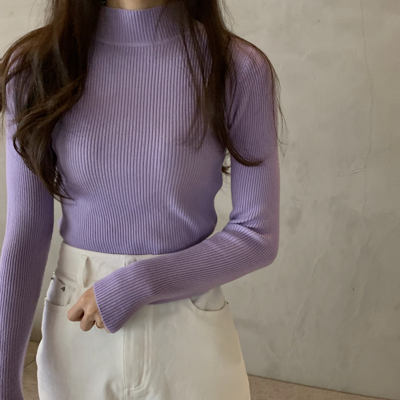 Главная страница > Черная вязаная нижняя рубашка Женская осень-зима 2022 Новая мода Тонкий полуводолазка со средним воротником в западном стиле