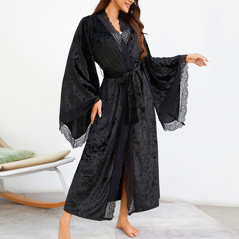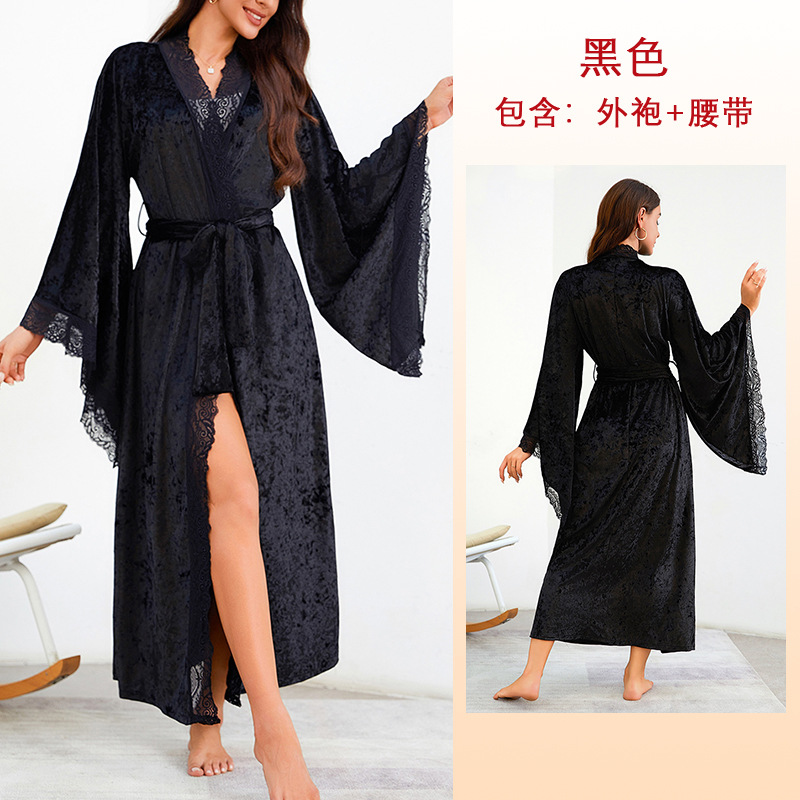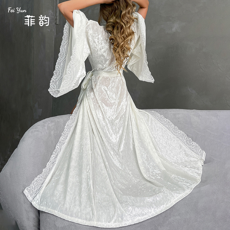 Главная страница > Новый европейский и американский удлиненный халат Feiyun, сексуальный кружевной доступный роскошный бархатный ночной халат с длинными рукавами, домашняя одежда 623