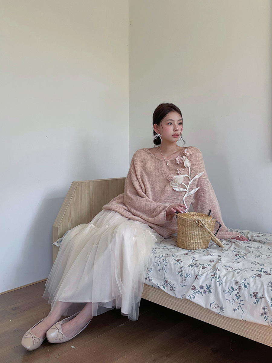 Главная страница > [Трехмерный вязаный свитер с цветочным узором Morning Flower Language] Вязаный свитер в корейском стиле Gomine для женщин, новый осенний топ N793B.