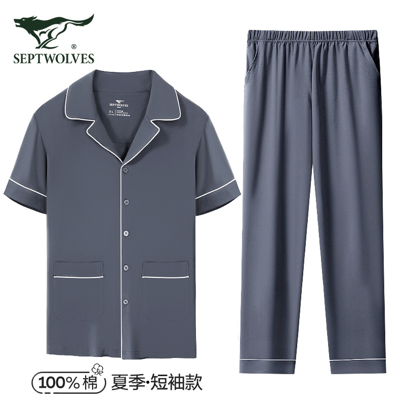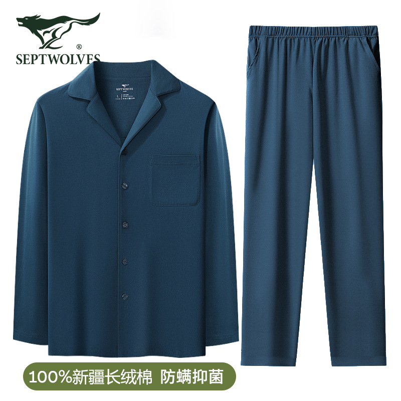 Главная страница > Мужская Домашняя одежда из чистого хлопка Seven Wolves, однотонный кардиган, домашний костюм с длинным рукавом, Хлопковая пижама для прогулок
