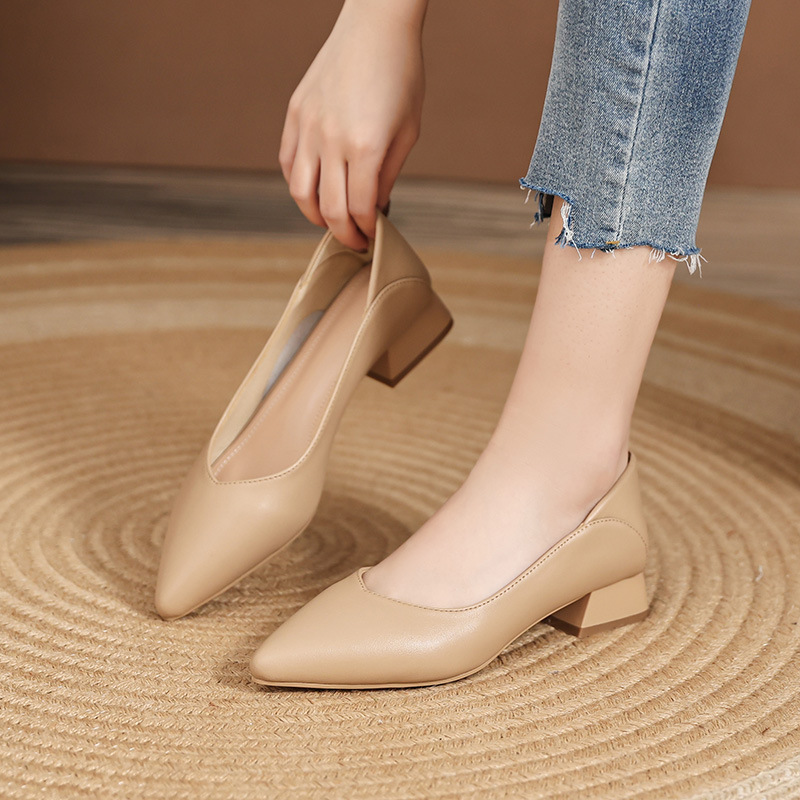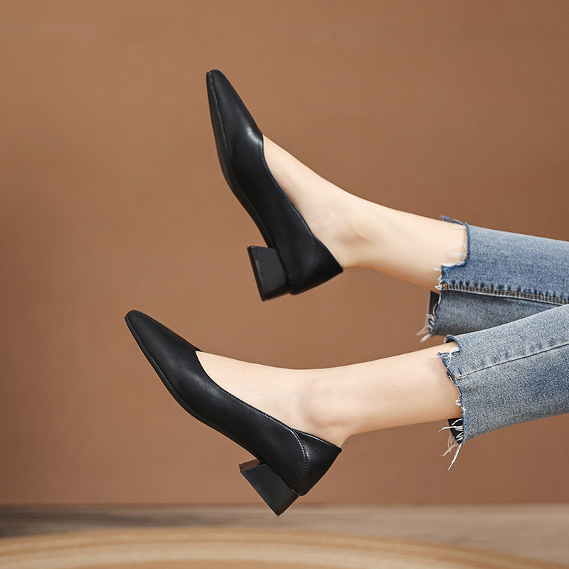 Главная страница > Туфли на высоком каблуке в корейском стиле, женственные бабушкины туфли, весенние туфли на толстом каблуке, острый носок, неглубокий рот, удобные рабочие туфли на среднем каблуке.