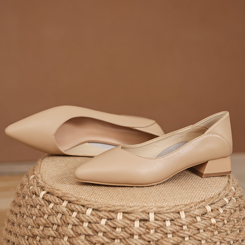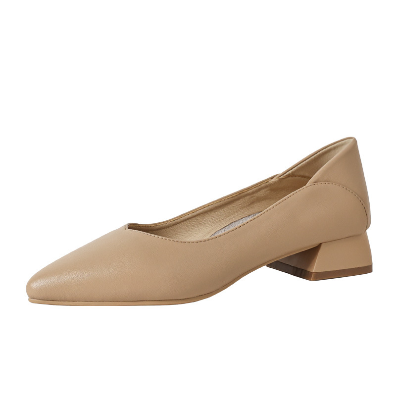Туфли на высоком каблуке в корейском стиле, женственные бабушкины туфли, весенние туфли на толстом каблуке, острый носок, неглубокий рот, удобные рабочие туфли на среднем каблуке.