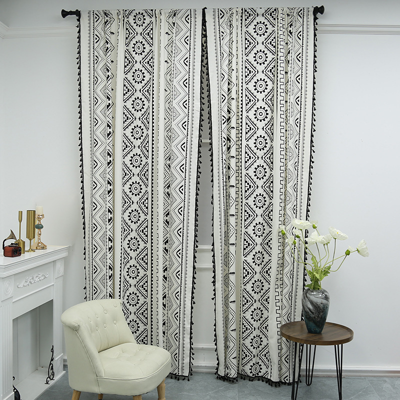 Главная страница > Богемная Этническая американская черно-белая Геометрическая Печать Хлопковая и льняная кухонная занавеска Трансграничная занавеска Прямые поставки с фабрики