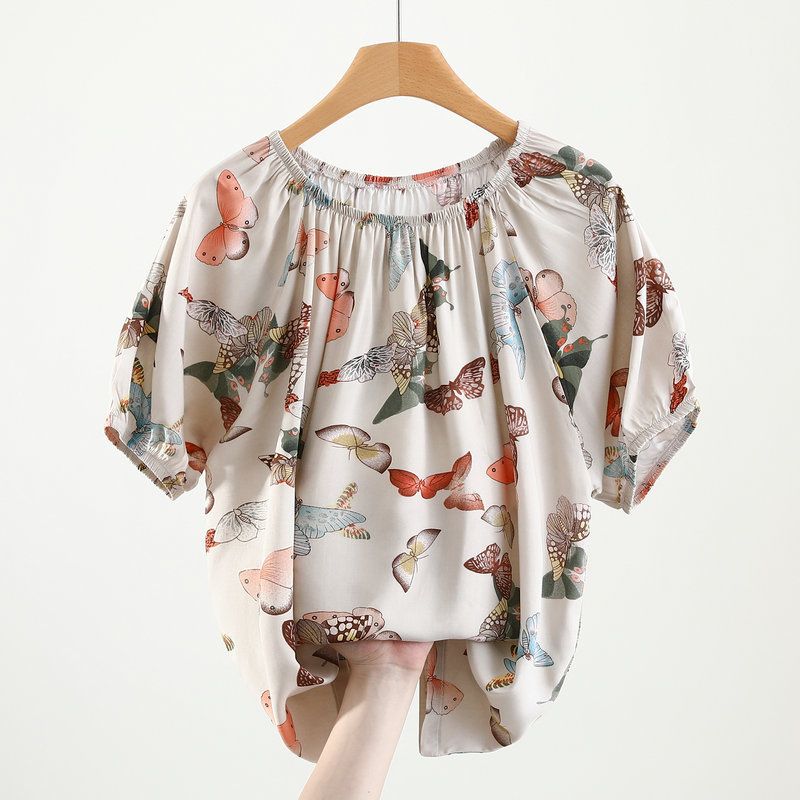 Главная страница > Хлопковая шелковая рубашка с воротником с открытыми плечами топ с короткими рукавами