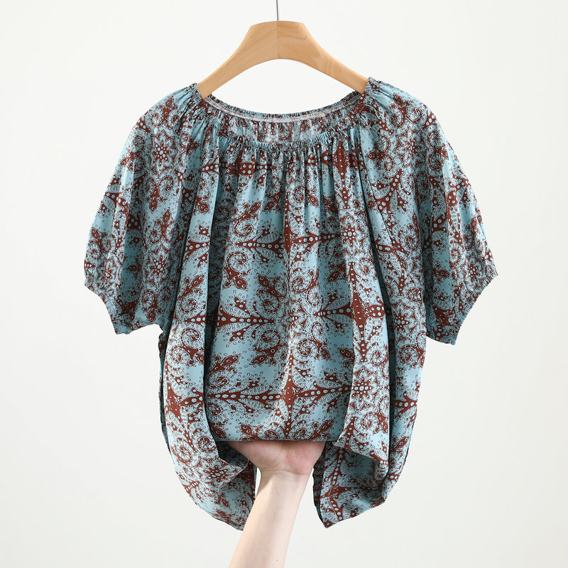 Хлопковая шелковая рубашка с воротником с открытыми плечами топ с короткими рукавами