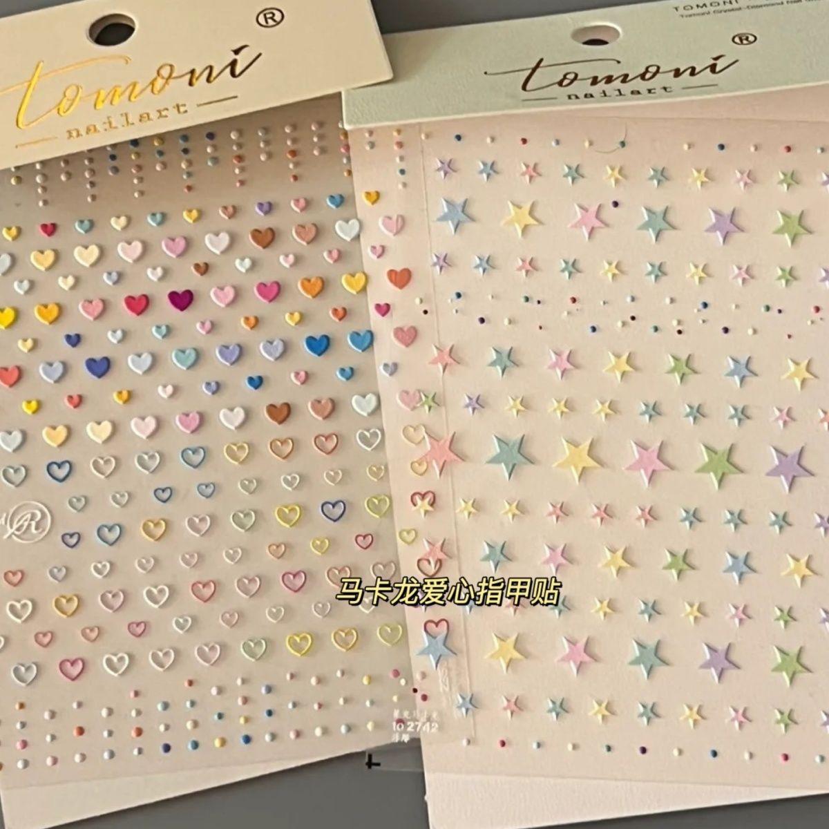 Наклейки для ногтей с макаронами, сердечками и звездами, объемные, в японском стиле, милые, для девочек, с маленькими узорами