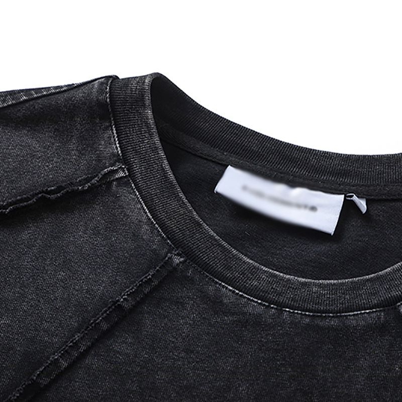Главная страница > Футболка с короткими рукавами и разрезом, прошитая швом, дизайнерская ниша модного бренда в стиле хип-хоп, Мужская выстиранная старая Повседневная футболка