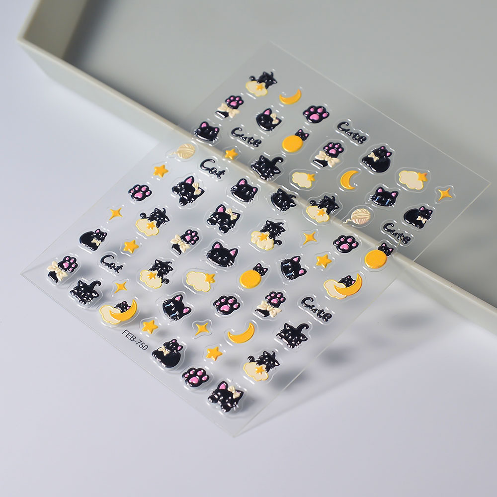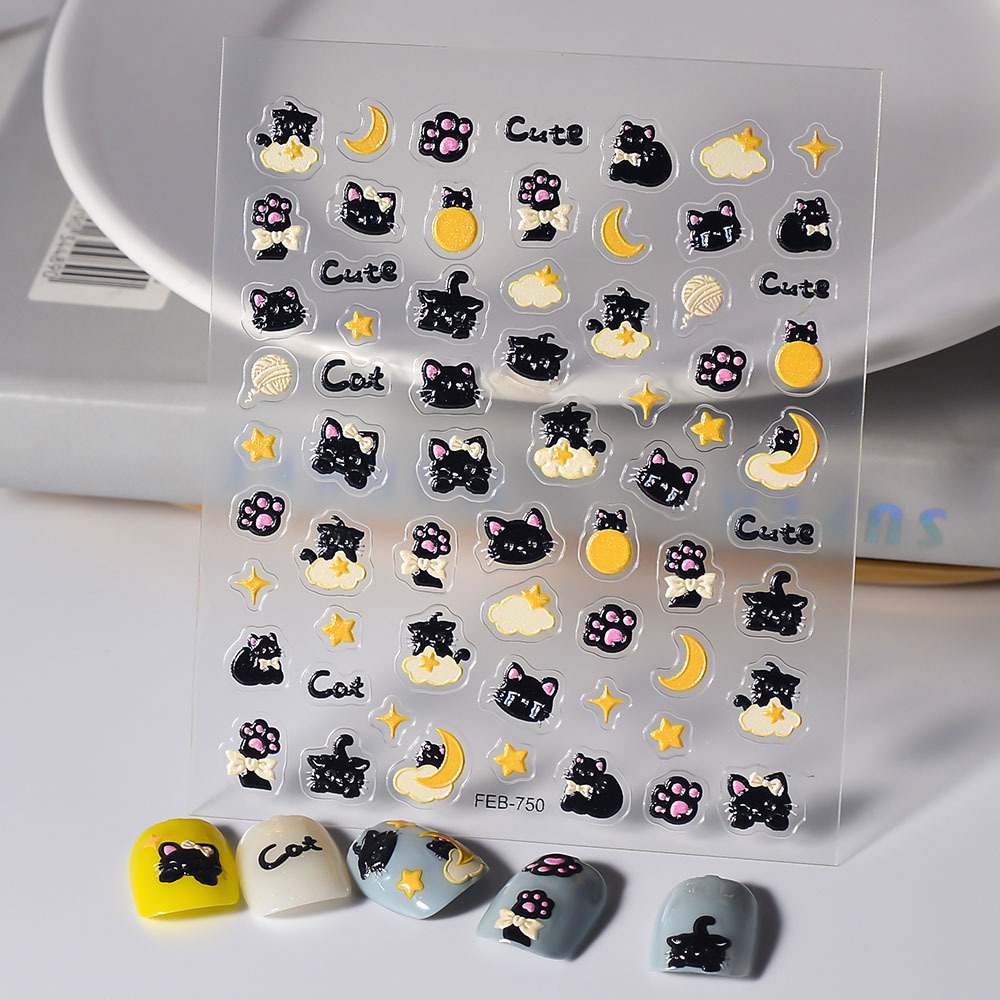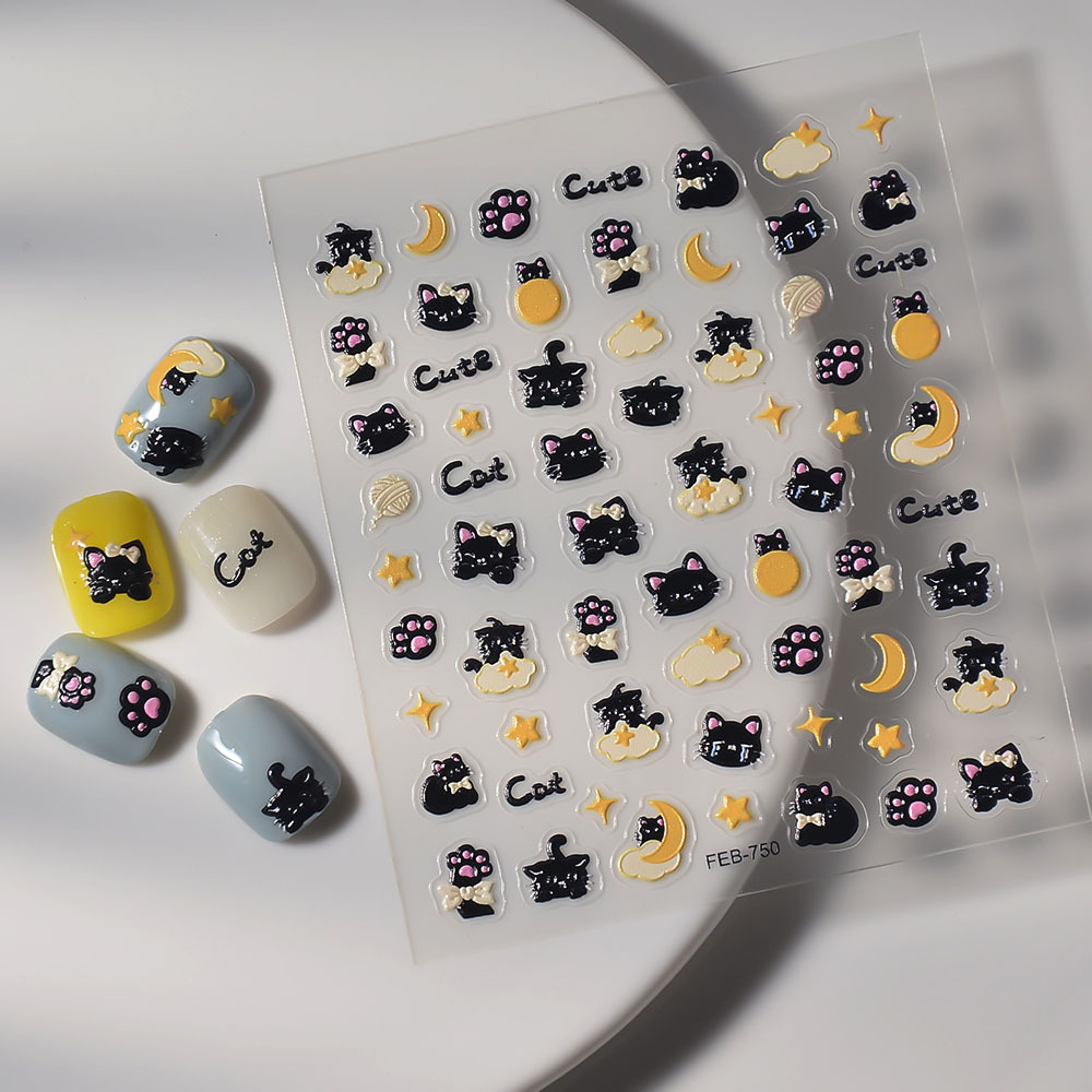 Главная страница > Милые маленькие черные кошачьи наклейки для ногтей с тиснением водостойкие Луна маленький узор мобильный телефон Goo Card Journal Декоративные наклейки для ногтей