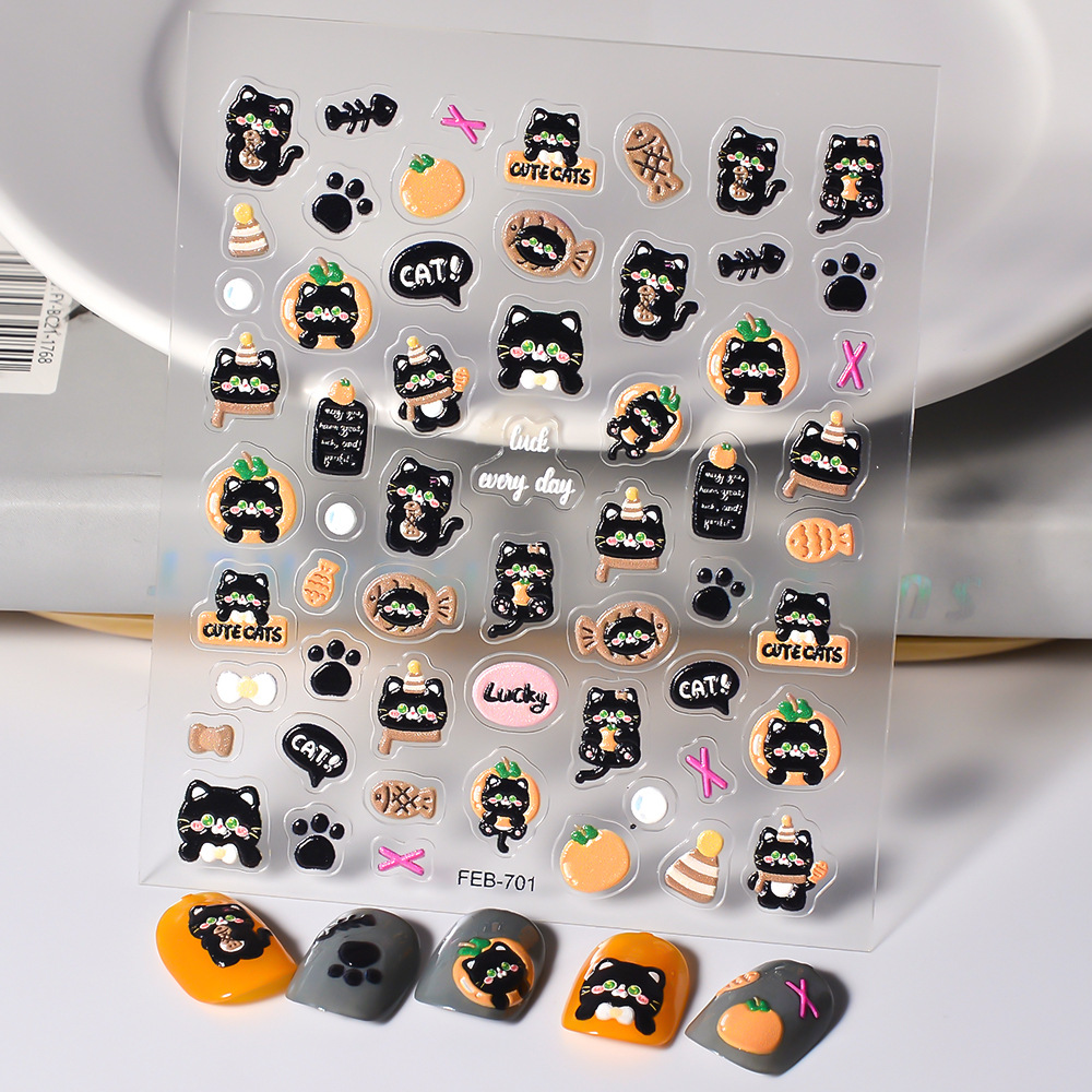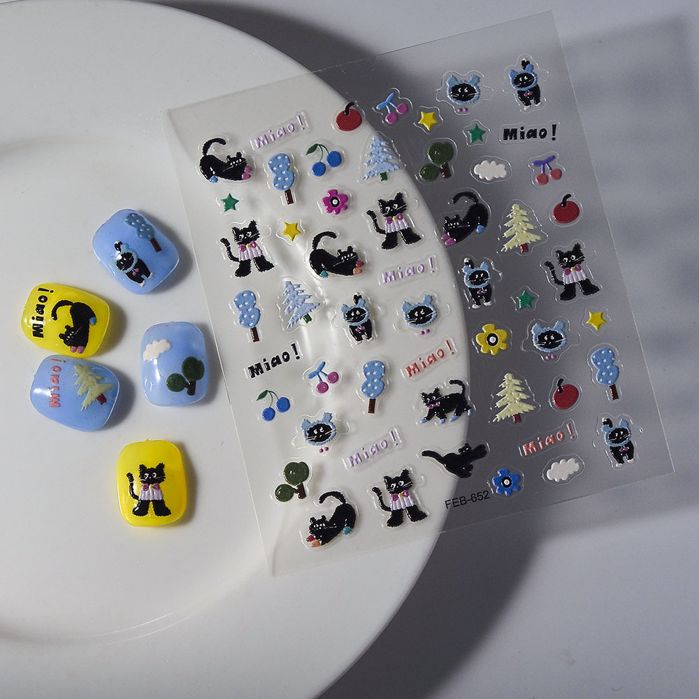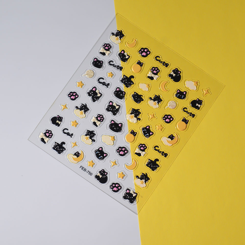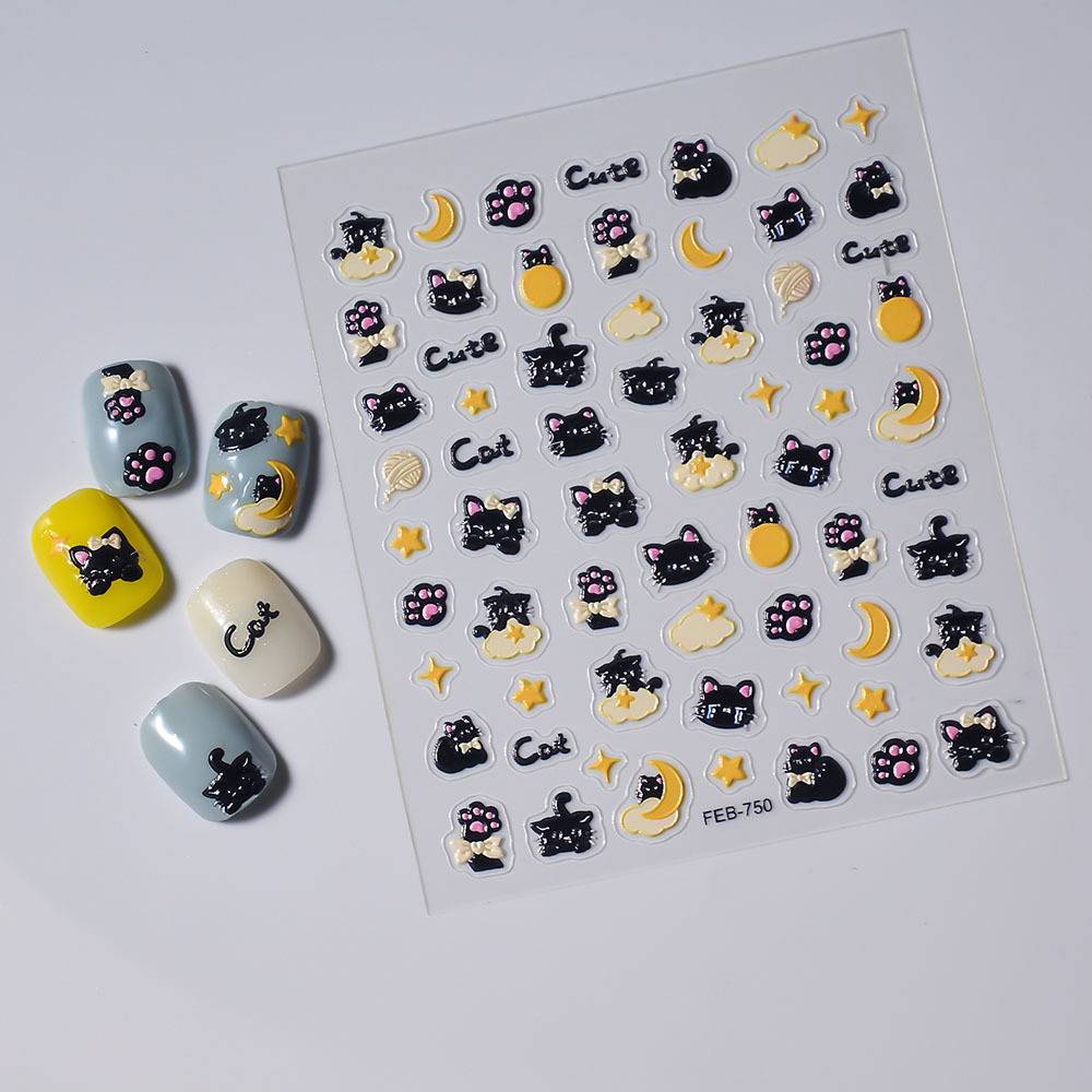 Главная страница > Милые маленькие черные кошачьи наклейки для ногтей с тиснением водостойкие Луна маленький узор мобильный телефон Goo Card Journal Декоративные наклейки для ногтей