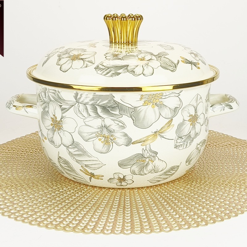 Главная страница > Эмалированная кастрюля Boshilang, бытовая бинауральная кастрюля для супа, тушеная кастрюля с крышкой, антипригарная сковорода, газовая индукционная плита, универсальная