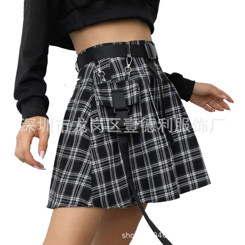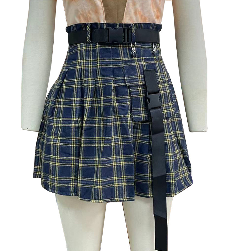 Европейская и американская Женская юбка, повседневная клетчатая плиссированная юбка с принтом и карманами, комплект из трех частей, новинка SU2374