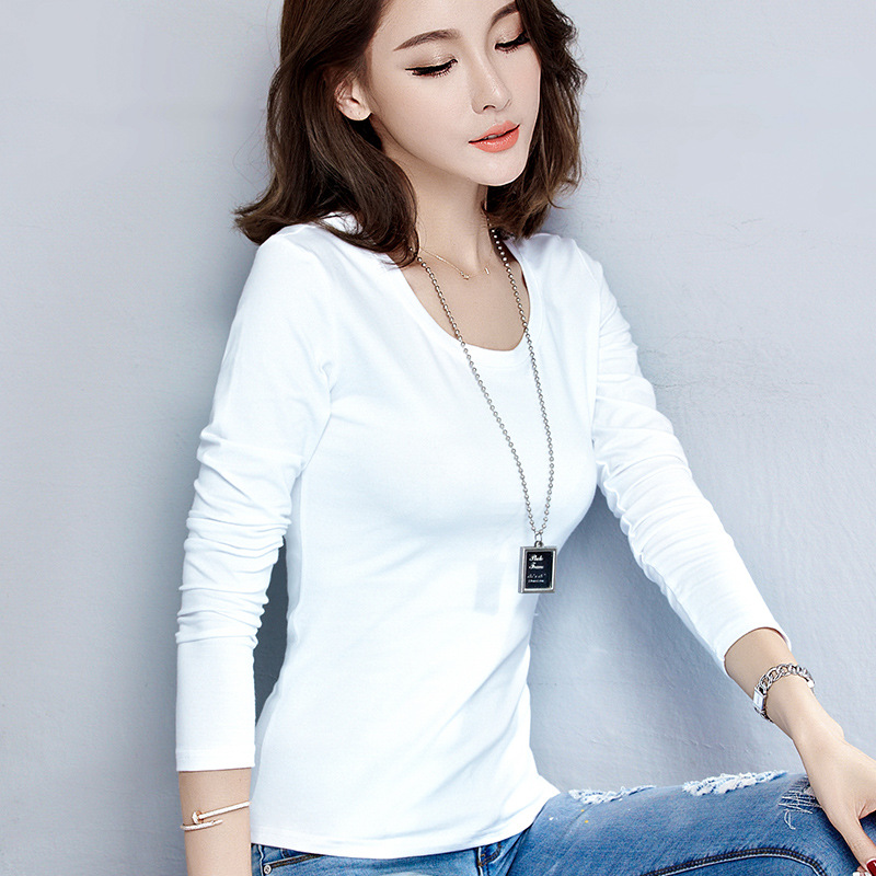 Главная страница > белая женская футболка с длинными рукавами, тонкая облегающая рубашка на весну и осень, универсальная маленькая рубашка на осень и зиму и облегающий топ.